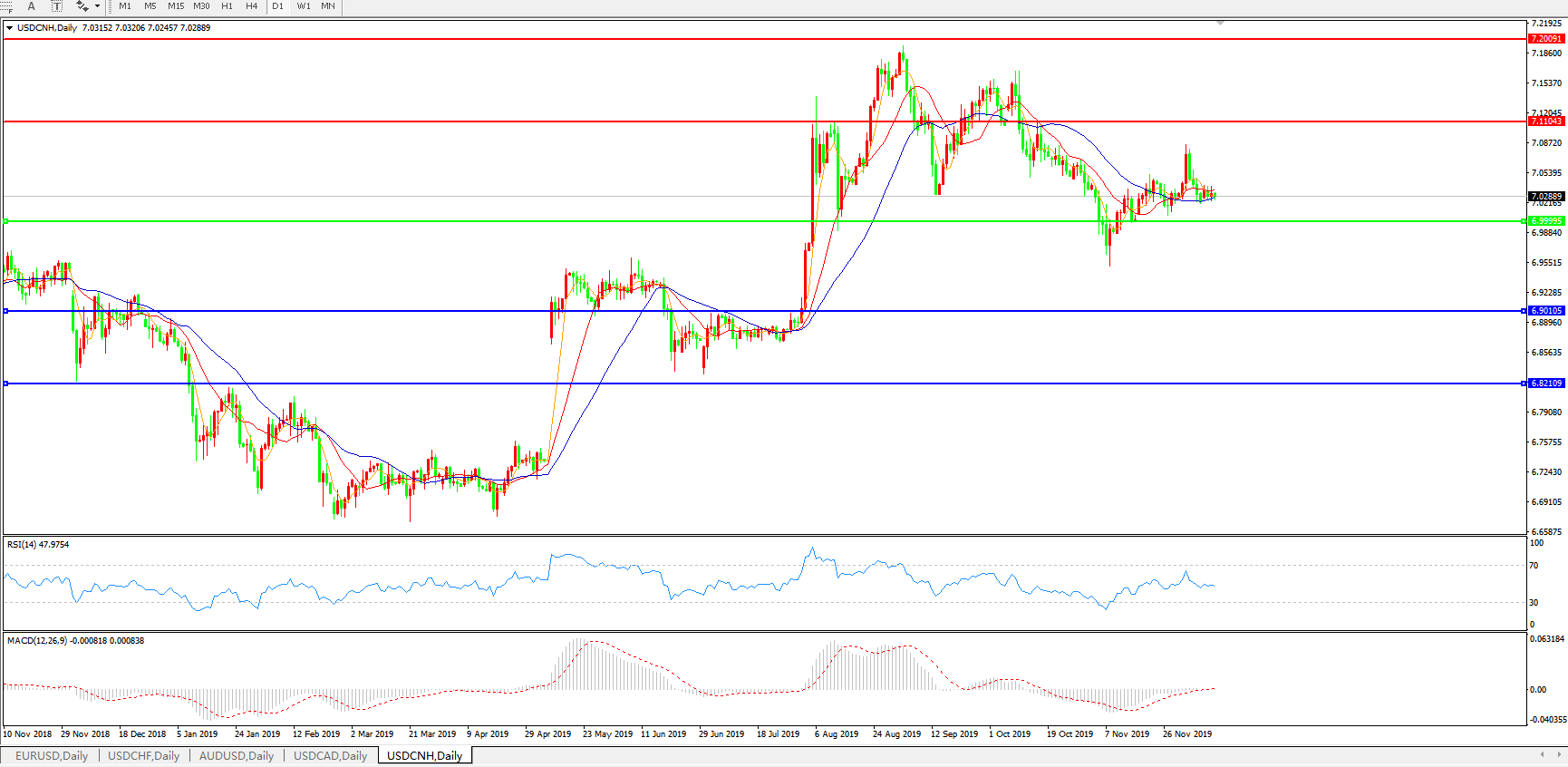 技术面简析:日图均线粘合无明显方向,汇价7.0关口上方维持窄幅波动,MACD自0轴下方逼近0轴且量能收缩几无,RSI震荡走平,预计短期汇价将在7.0关口附近整理,中期汇价需等待美元指数及中美贸易谈判最新进展指引。