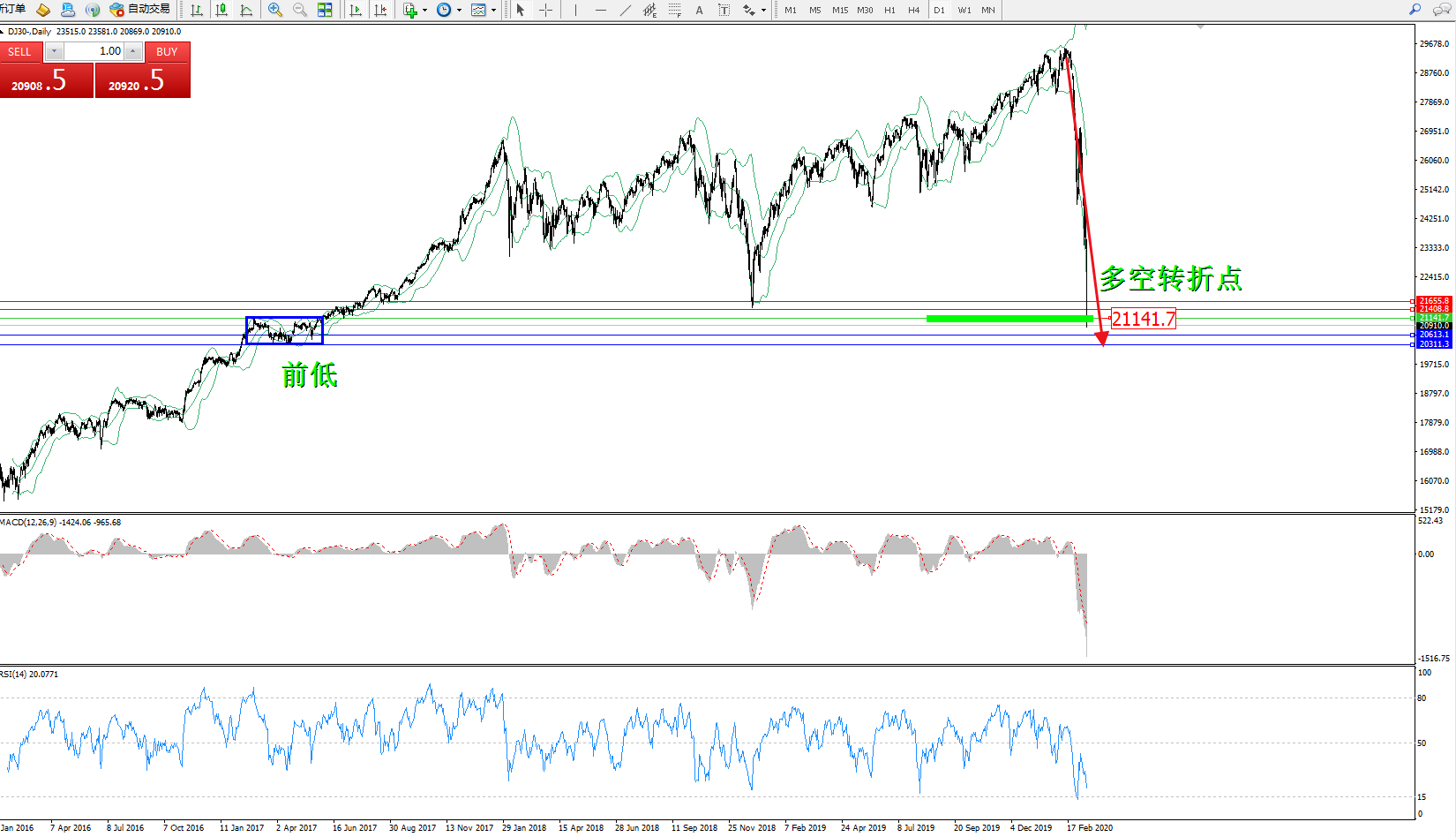 道琼斯指数3月12日(周四)收盘下跌2352.30点,跌幅9.99%,报21200.95点。美股再度重挫,道指收跌约2360点,创1987年10月以来最大单日跌幅,道琼斯工业平均指数刚刚触及21200.00,关注关口争夺情况,日图目前跌10.01%,因市场担忧冠状病毒的潜在经济损失,12日晚间(北京时间)美股大幅低开,随后跌幅不断扩大,标普500指数跌幅扩大至7%,触发熔断,美股暂停交易15分钟。该次熔断,为美股史上第三次触发熔断。美国国内经济如何,美元可能会继续走强,因为美元融资市场开始出现紧张局面;在美股市场高度动荡的时候,纽约联储挺身而出,宣布将在美国东部时间周四下午1点30分开展5000亿美元的三月期回购操作,同时还将扩大国库券的购买范围。