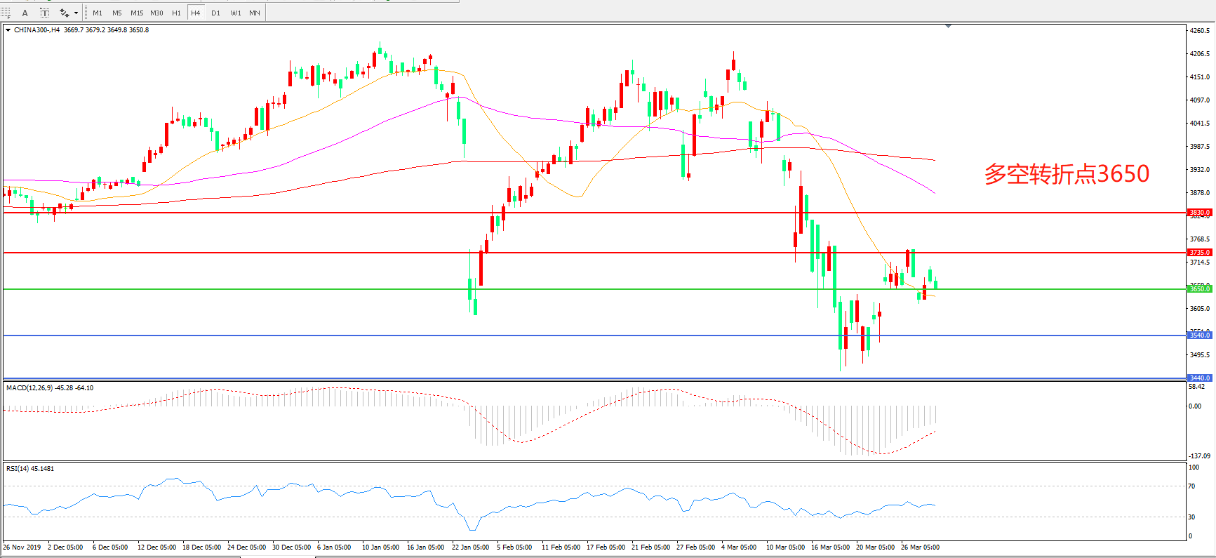 4小时图看,沪深300高开低走,整体维持震荡形态,均线系统逐渐走平,MACD绿柱缩短,RSI指标走平,日内维持震荡概率较大。