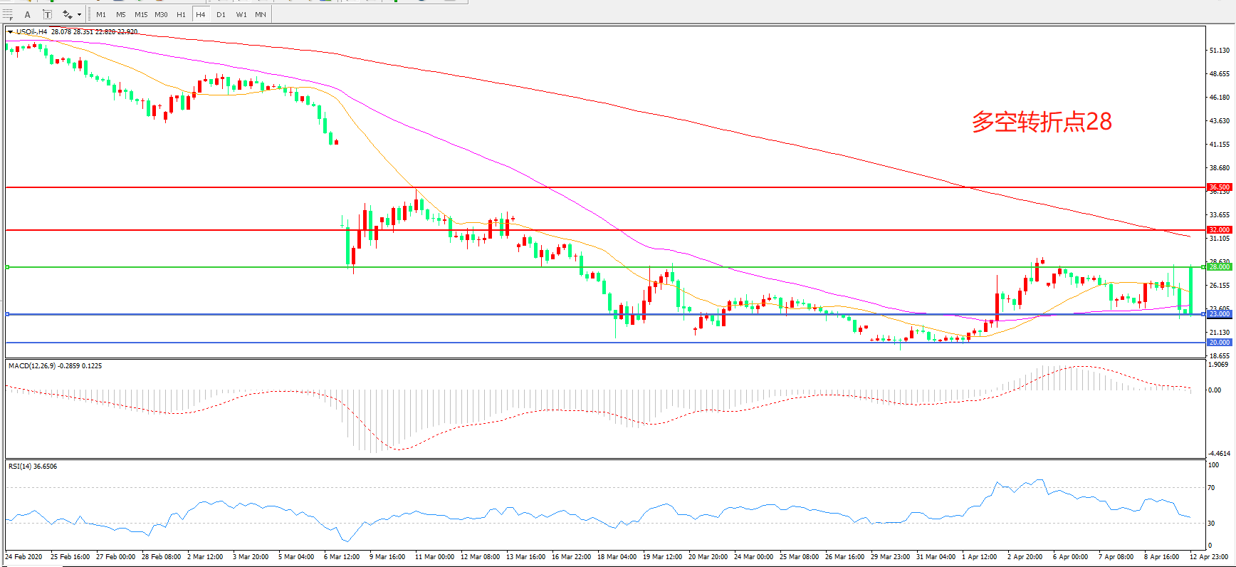 周一(4月13日)凌晨,全球主要石油生产国组成的“欧佩克+”石油联盟宣布达成历史性减产协议,以期结束造成严重损失的石油价格大战。WTI原油开盘跳涨8%,但利好仅持续不到5分钟,油价再次大跌,截止发稿前收报22.84美元/桶。