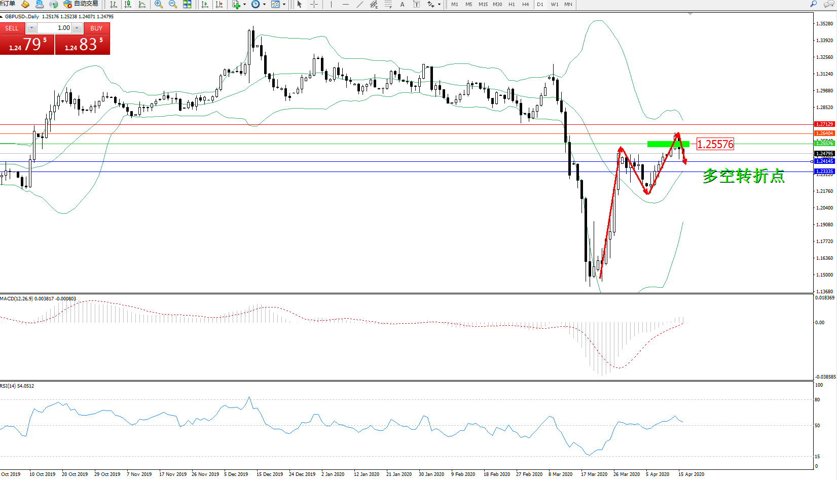 交易策略:1.25576下方看跌,目标1.241451.23335