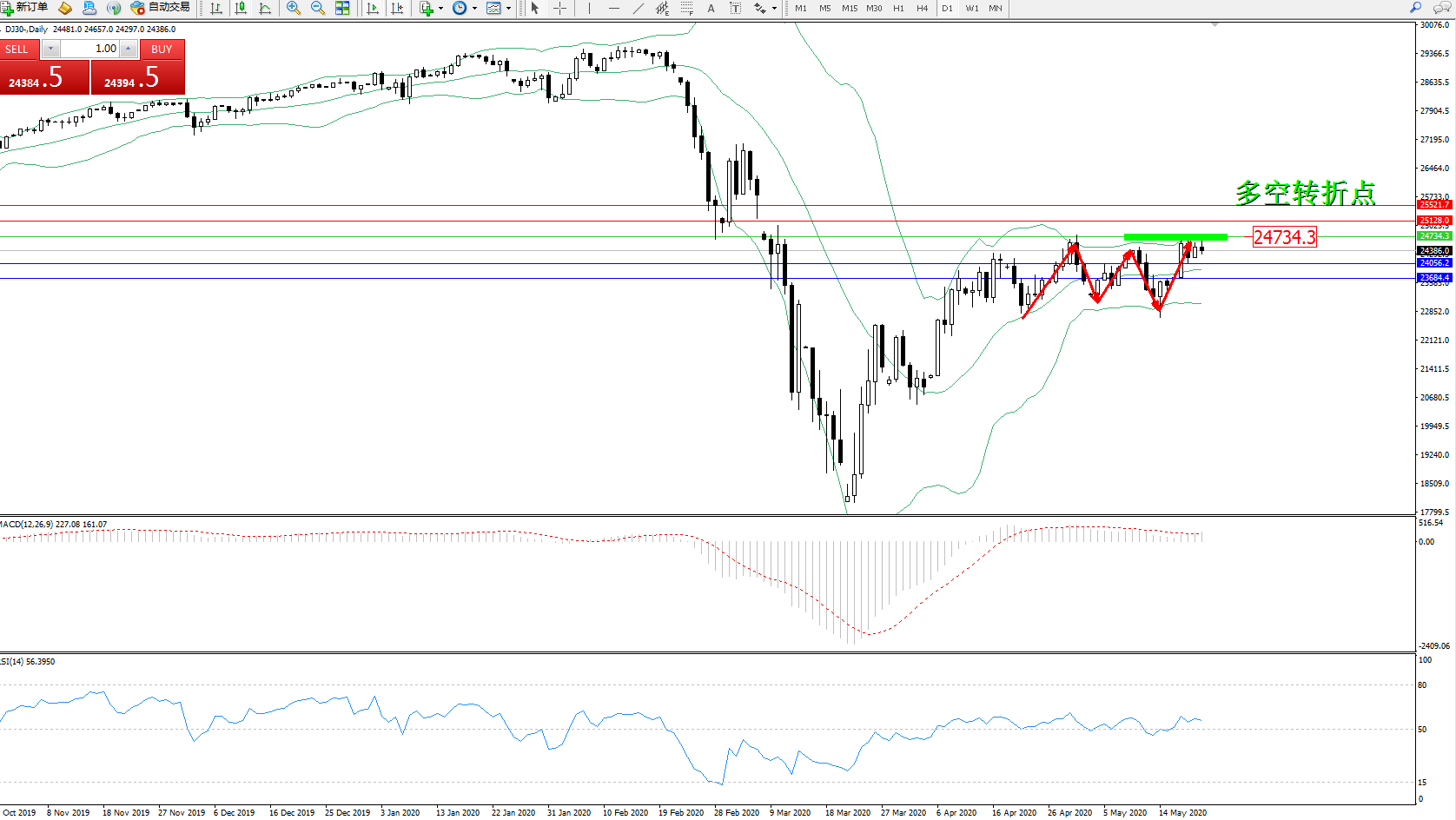 道琼斯指数521日(周四)收盘下跌101.80点,跌幅0.41%,报24474.12点。上周又有数百万美国人申请失业救济,疫情造成的混乱引发了第二波裁员,预示着5月份又将出现令人震惊的失业,显示美国经济复苏仍缓慢,至少劳动市场反应相对缓慢。避险需求有所降温,全球各地复工如火如荼,股市油市等受到大幅提振。疫情导致的美元流动性危机已经结束,美联储将经受住进一步的美元需求,但长期前景仍笼罩着不确定性。未来几个季度,随着经济的重新启动,除了估值之外,政治、地缘政治和财政动态也可能对美元走势产生影响,仍需关注美国大选对美元的影响,美元的短、中和长期前景,指出美联储不但是美国的中央银行,也扮演着全球金融体系的央行角色。