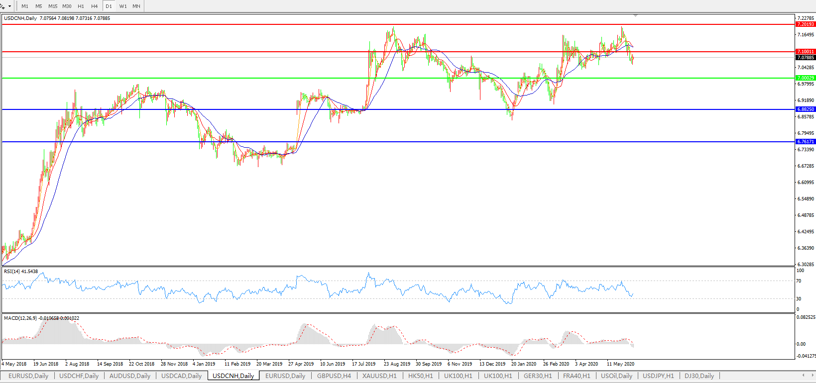 美元兑人民币USDCNH    日线图: