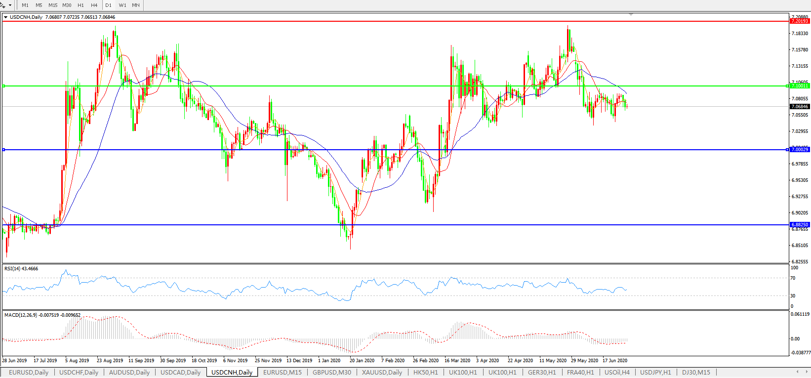 技术面简析:日图均线有走弱迹象,汇价承压7.10关口开始弱势下行,MACD运行于0轴下方但量能不足,RSI再度走弱,预计短期汇价或将持续窄幅整理,关注7.10关口压制。