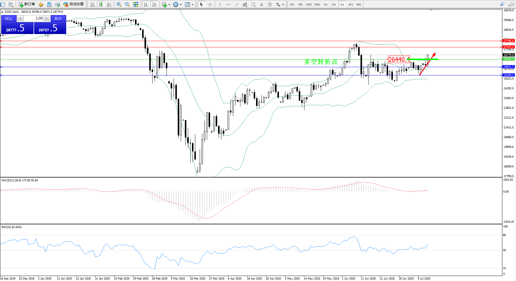 道琼斯指数7月14日(周二)收盘上涨556.80点,涨幅2.13%,报26642.59点。美股三大指数集体收涨,能源、原材料和工业股领涨。投资者评估企业季报以及疫情反弹的冲击。大型科技股盘初迈向5月中旬以来首个两连跌,企业可能在这个财报季实事求是,即便这是对V形复苏泼冷水。美国劳工部公布报告显示,美国6月消费者物价指数(CPI)出现近八年来最大的反弹,结束了连续三个月的跌势,通胀证据在CPI以外的指标中更好地体现出来。由于美联储和财政部采取了大规模新冠疫情刺激措施,预计通胀率将会上升。自3月底以来,经通胀调整的10年期TIPS收益率一直为负,目前为负0.797%,接近历史低点。