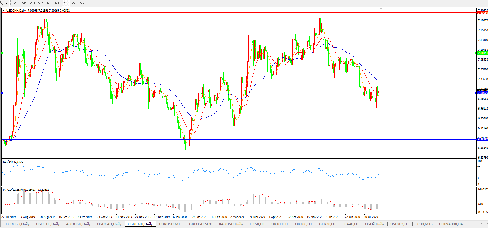 美元兑人民币USDCNH 日线图: