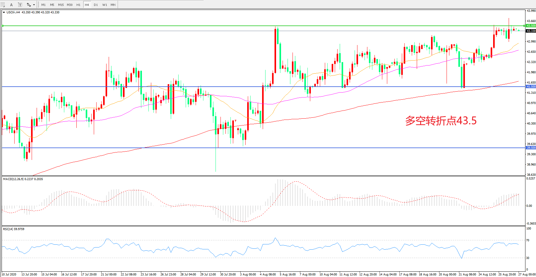 交易策略:在43.50之上看涨,目标46.00         49.50