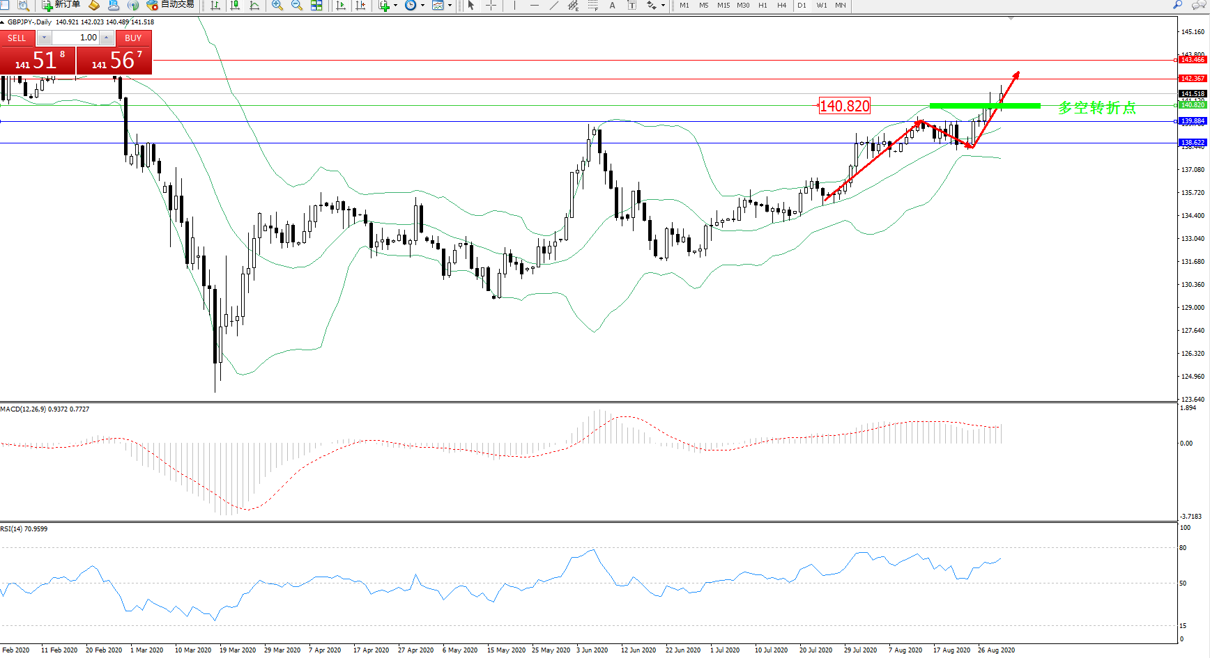 英镑兑日圆强势拉升至141.488附近,虽然美元指数的持续走软继续助推非美货币走强,但是英国财政政策前景引发投资者顾虑,投资者还继续担心英国脱欧谈判前景,在当前英欧谈判进展不顺的背景下,年底无法达成协议的硬脱欧概率已经升至40%,除此之外,英国保守党议员还敦促财政部不要在11月发布的预算中采取加税措施,在此状况下,更多宽松政策压力或继续额外推给英国央行。由于英方的顽固不化和不切实际,才导致了英欧过渡期谈判当前止步不前的局面。本周没有英欧贸易谈判,下周将进行新一轮谈判。此外,英国财政大臣苏纳克拟全面增税弥补疫情损失,降低预算赤字。但是,该想法遭到了英国保守党和商界的猛烈抨击。英国保守党议员费什(Marcus Fysh)在Twitter上表示,增税是对当前形势的错误回应,我们需要帮助经济,而不是扼杀经济复苏。