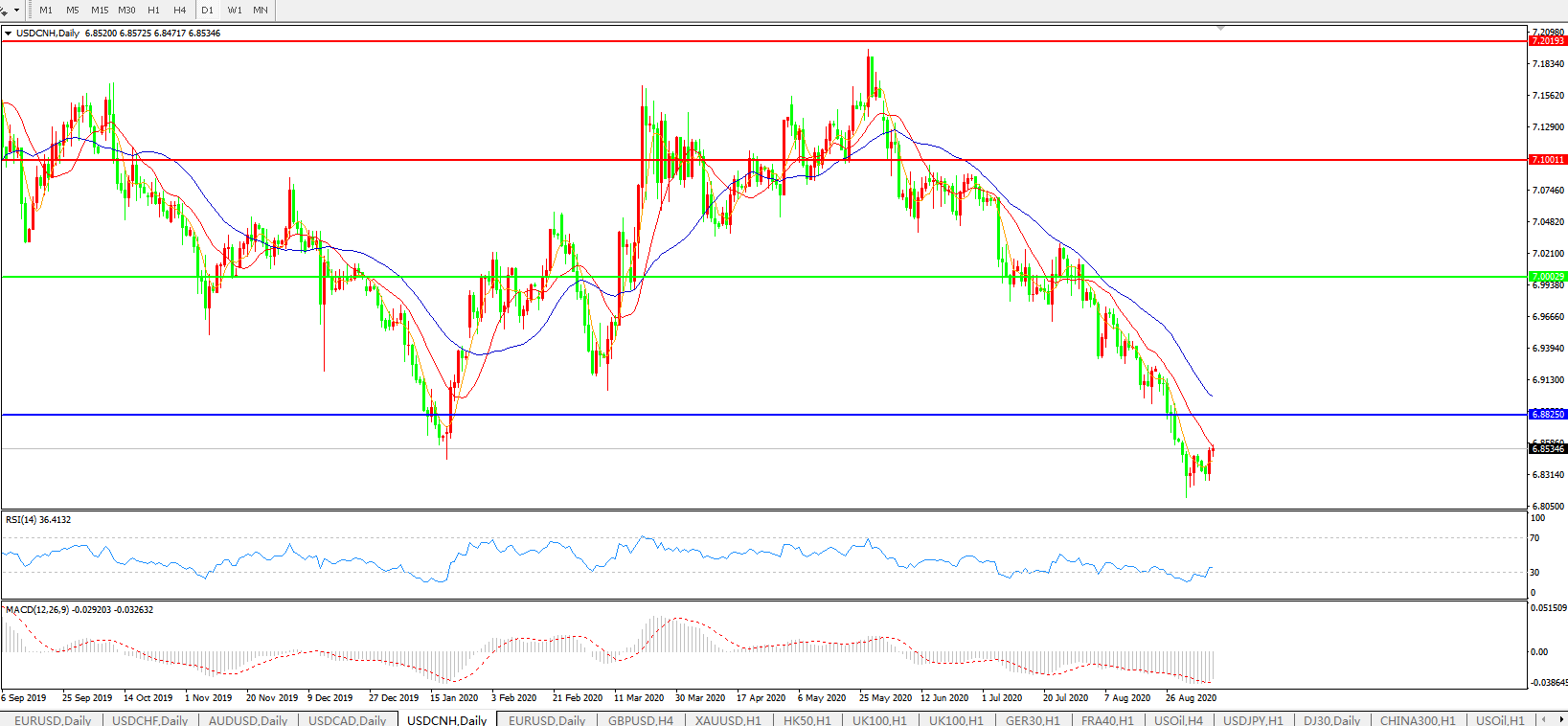 美元兑人民币USDCNH    日线图: