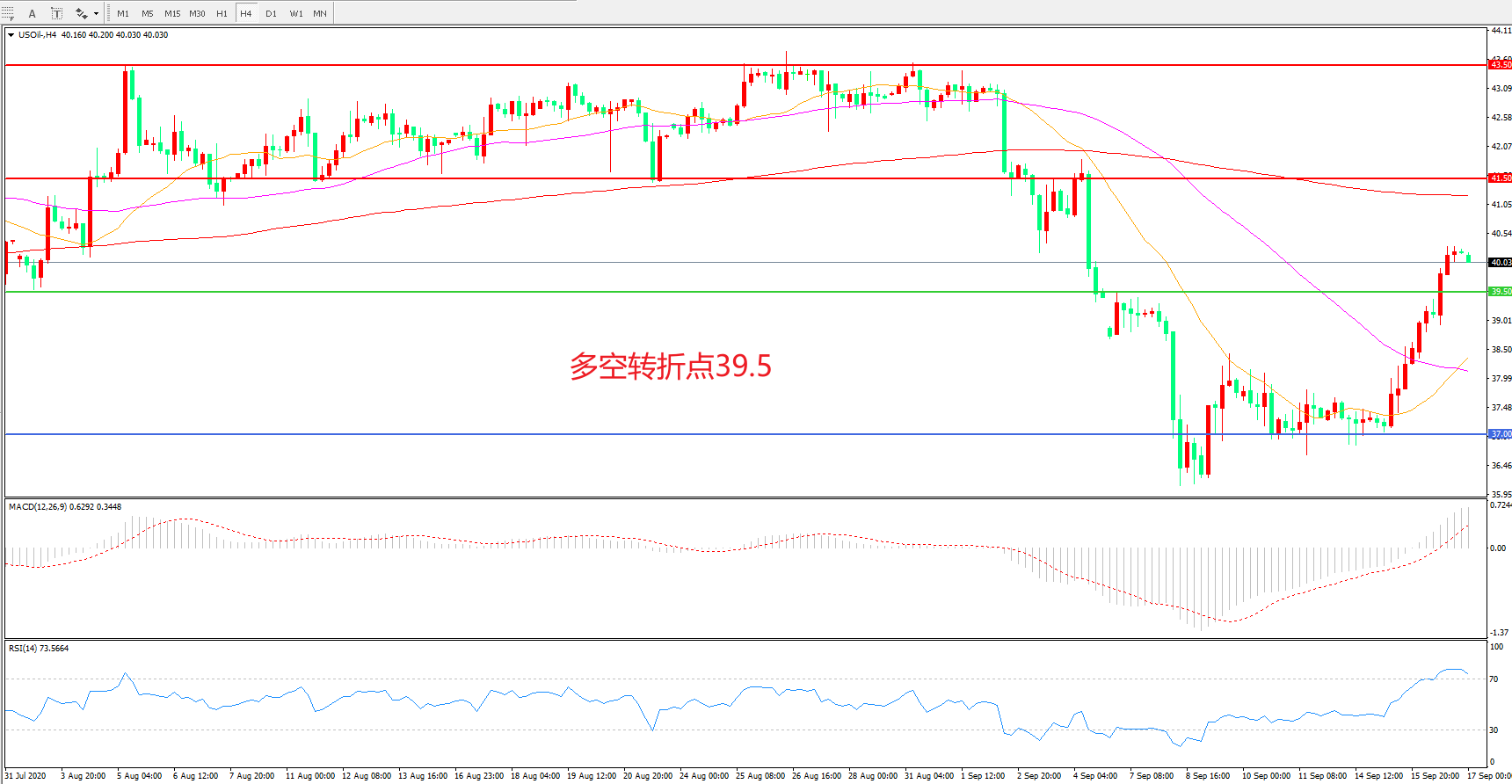 周三(9月16日),美国能源信息署公布的数据显示,当周EIA原油库存减少438.90万桶,好于预期。国际油价表现强劲,美国WTI原油大涨5.31%, 收报40.12美元/桶。经过了前期的高位回落之后,油市大部分利空因素得以消化,市场酝酿了反弹需求,在EIA库存报告好转以及飓风影响墨西哥生产等因素提振下,激发了市场的做多热情。