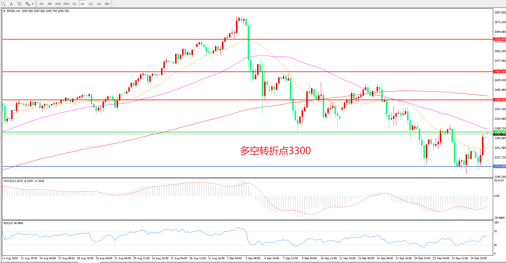 上周五(9月25日),经历了近一个月的下跌之后,美股终于迎来了难得的反弹,标普500指数涨1.6%,报3287.25点。但一天的上涨难以抵消全周的低迷,标普500指数周跌0.6%,录得周线四连阴,为2019年8月以来的最长跌势。