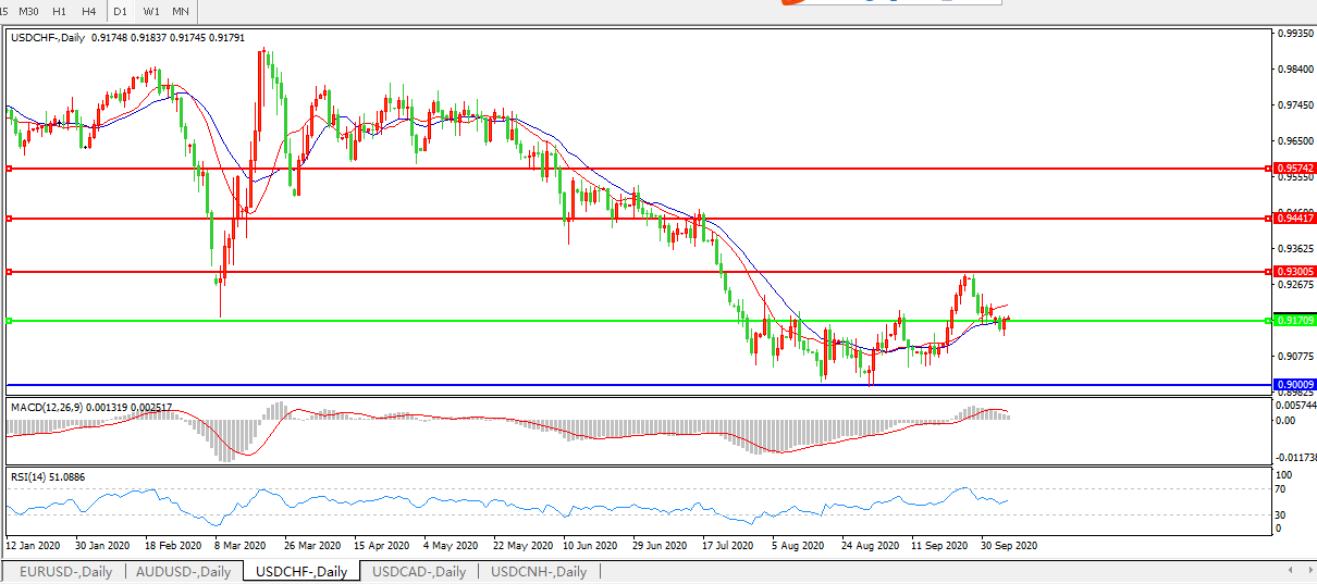 交易策略:0.9170上方看涨,目标0.9300、0.9440