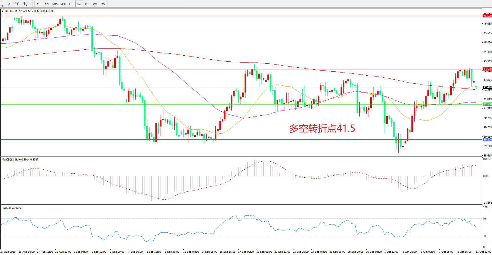 交易策略:  在41.50之上看涨,目标43.50      46.50
