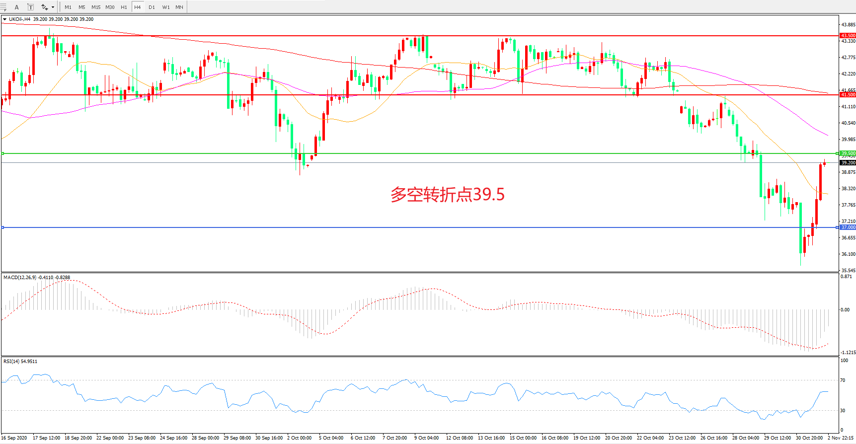 备选策略:在39.50  之上看涨,目标41.50       43.50