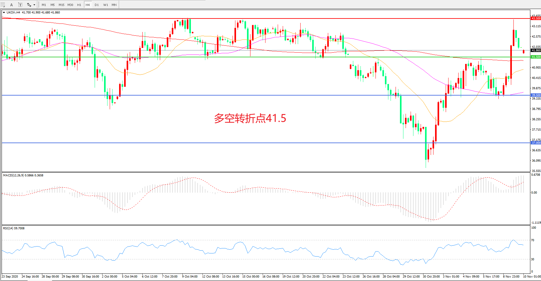 交易策略:  在39.50  之上看涨,目标41.50       43.50
