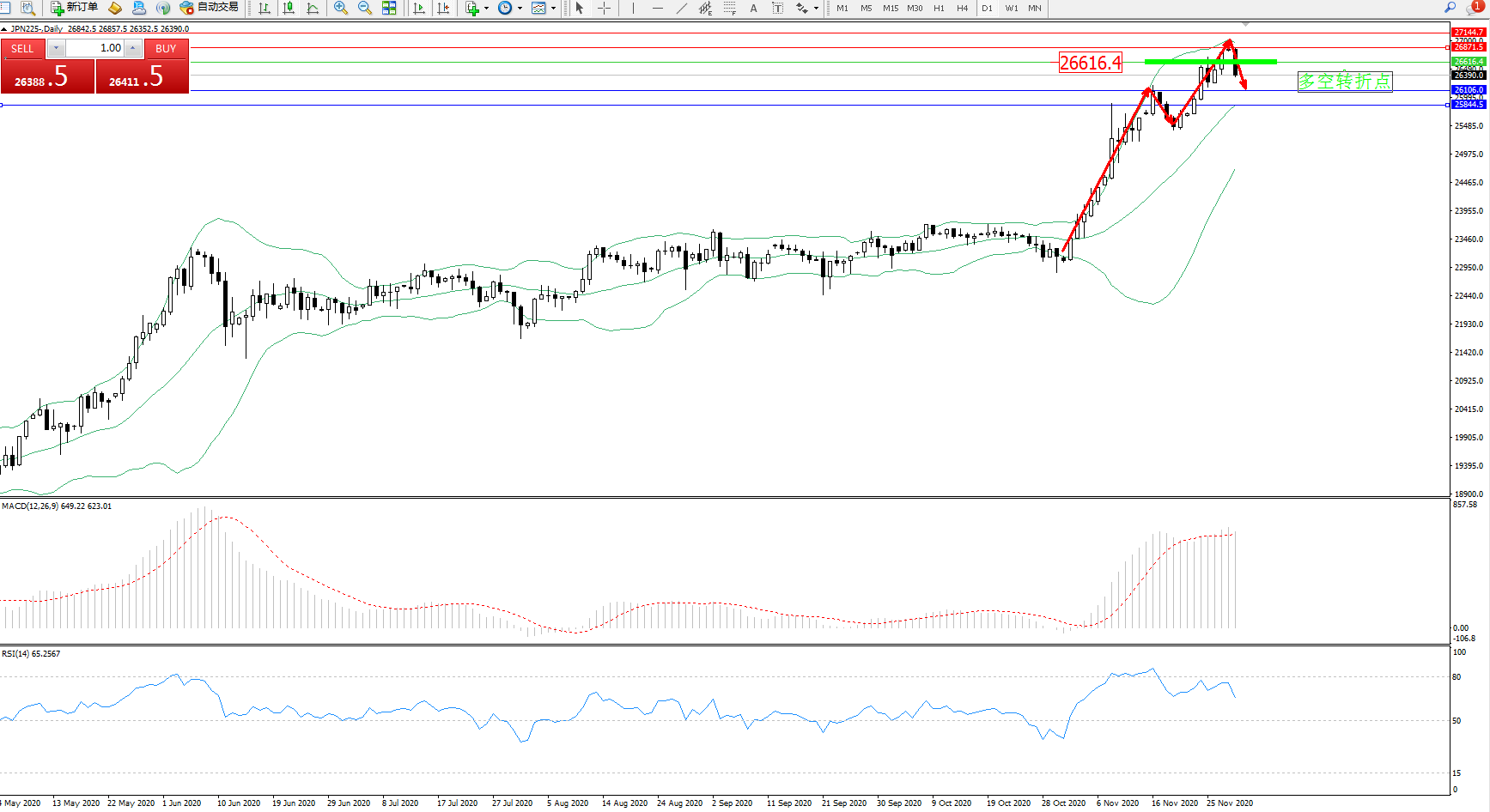 日经225指数11月30日(周一)收盘下跌187.71点,跌幅0.70%,报26457.00点。日本财务大臣麻生太郎:由于新冠疫情影响,日本经济状况仍然严峻。随着年底临近,预计企业的融资需求将上升。一些公司目前确实面临融资困难。将从金融方面支持日本经济并与政府、日本央行密切合作。希望银行倾听需要融资帮助企业的声音。市场消息:日本金管局向日本交易所(JPX)、东京证交所(TSE)发布了商业改善令。日本交易所集团因10月份的宕机受到日本金融服务管理局处罚。日本交易所CEO:我们将认真考虑日本金管局的改进令。内部小组已经完成了调查和现场报告。富士通的确(就交易事故)负有一定责任,但我们也负有一定责任。希望富士通能提供可靠的交易系统。将和东证所CEO协同行动,直至明年管理层换届。