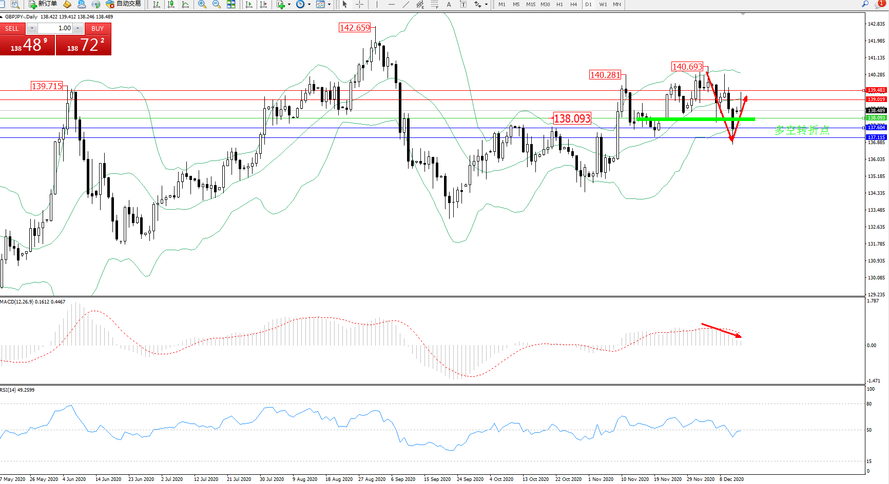 英镑兑日圆低位强势回升至138.610附近震荡,英国首相约翰逊在与欧盟委员会主席冯德莱恩举行电话会晤后,共同表示将继续推进英欧贸易谈判。参与脱欧谈判进程的官员们表示,可能最终在本周达成协议。据三位知情人士称,英国周末针对最大分歧向欧盟提出的方案可能会打破僵局。该分歧涉及如何为英国和欧盟的企业建立一个公平竞争的环境。如果方案可行,英国可以让欧盟在英国水域的捕鱼权问题上让步。