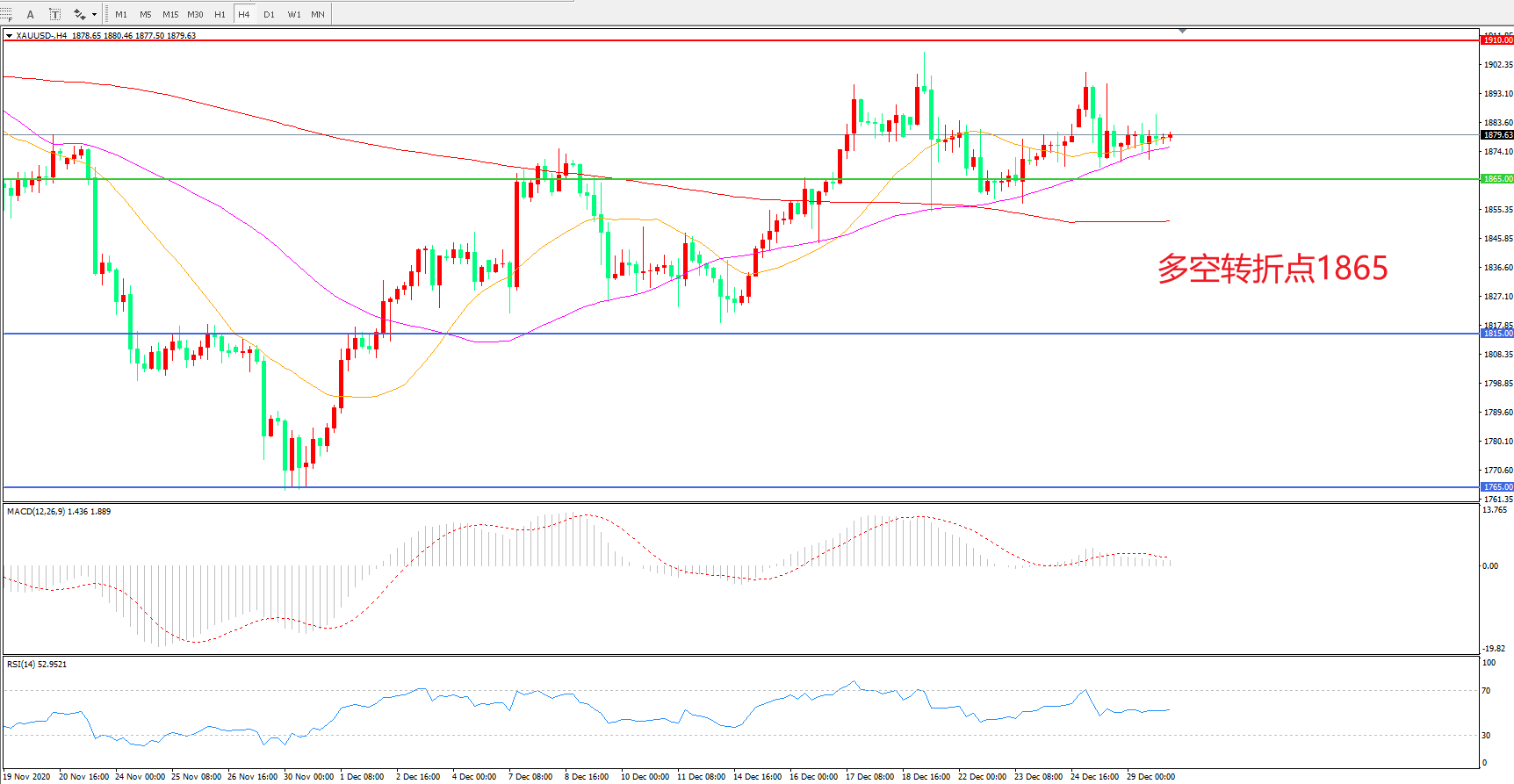 周二(12月29日),美国国会众议院投票通过给美国人派发现金增至2000美元的提案,麦康奈尔否决民主党人试图快速通过该提案的程序,引发美国总统特朗普不满,多空博弈相对谨慎,金价延续窄幅震荡,收报1879.70美元/盎司。目前疫情的变化和市场对未来的预期仍会是主导因素,如果财政政策在年初落地开始实施,黄金将维持阶段性强势。