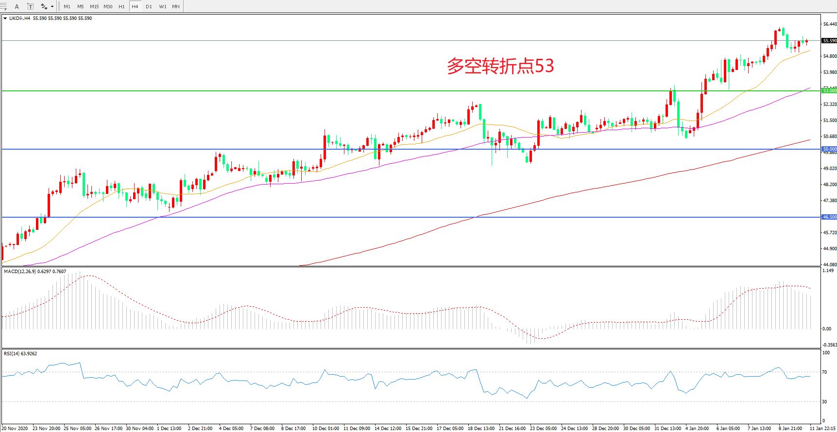 交易策略:  在53.00之上看涨,目标57.00      60.00