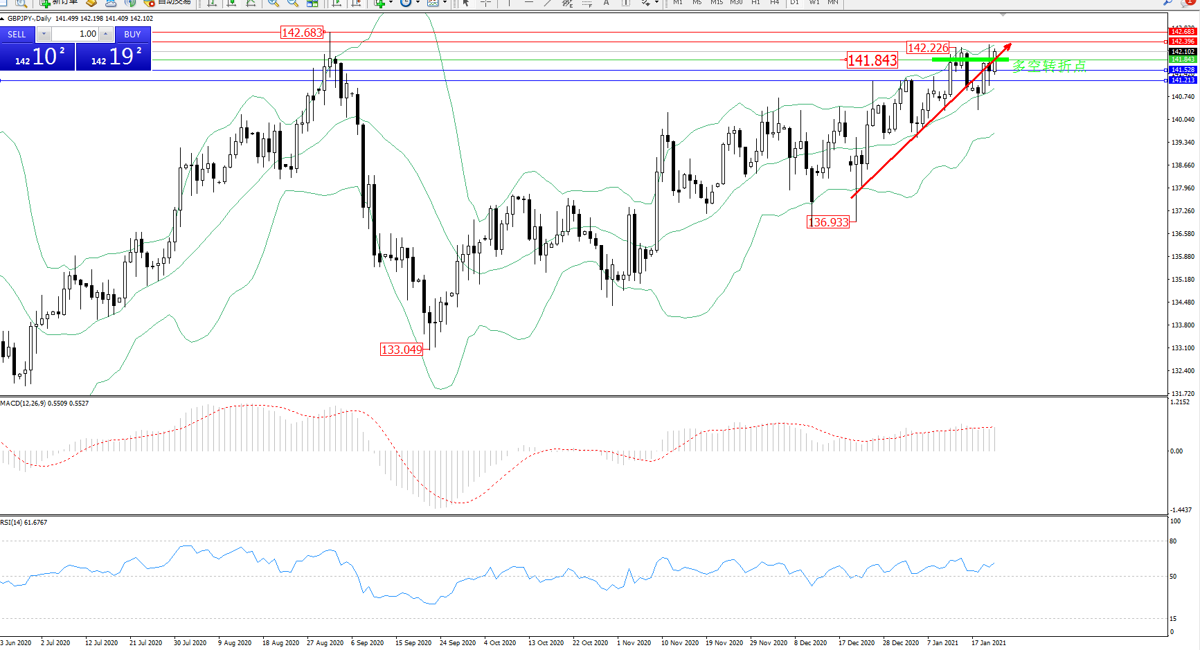 英镑兑日圆持续震荡上扬至142.102附近整理中,英国卫生大臣汉考克:现在每分钟能接种200剂疫苗,我们的供应不稳定,制造商工作非常努力,但这是一个挑战,我确信疫苗供应将随着时间的推移而趋于平稳,新的变种病毒确实改变了控制边境的问题,正密切审查边境政策,该数据支持将辉瑞疫苗的剂量计划改为12周的决定,辉瑞疫苗89%的效果出现在第一次注射后的第14天和第21天,数据支持将辉瑞注射的剂量调整到12周的决定。同时英国进行了成功的快速疫苗接种的尝试;另外,持续的美元抛售帮助该货币对在周四连续第三个交易日重新获得吸引力。