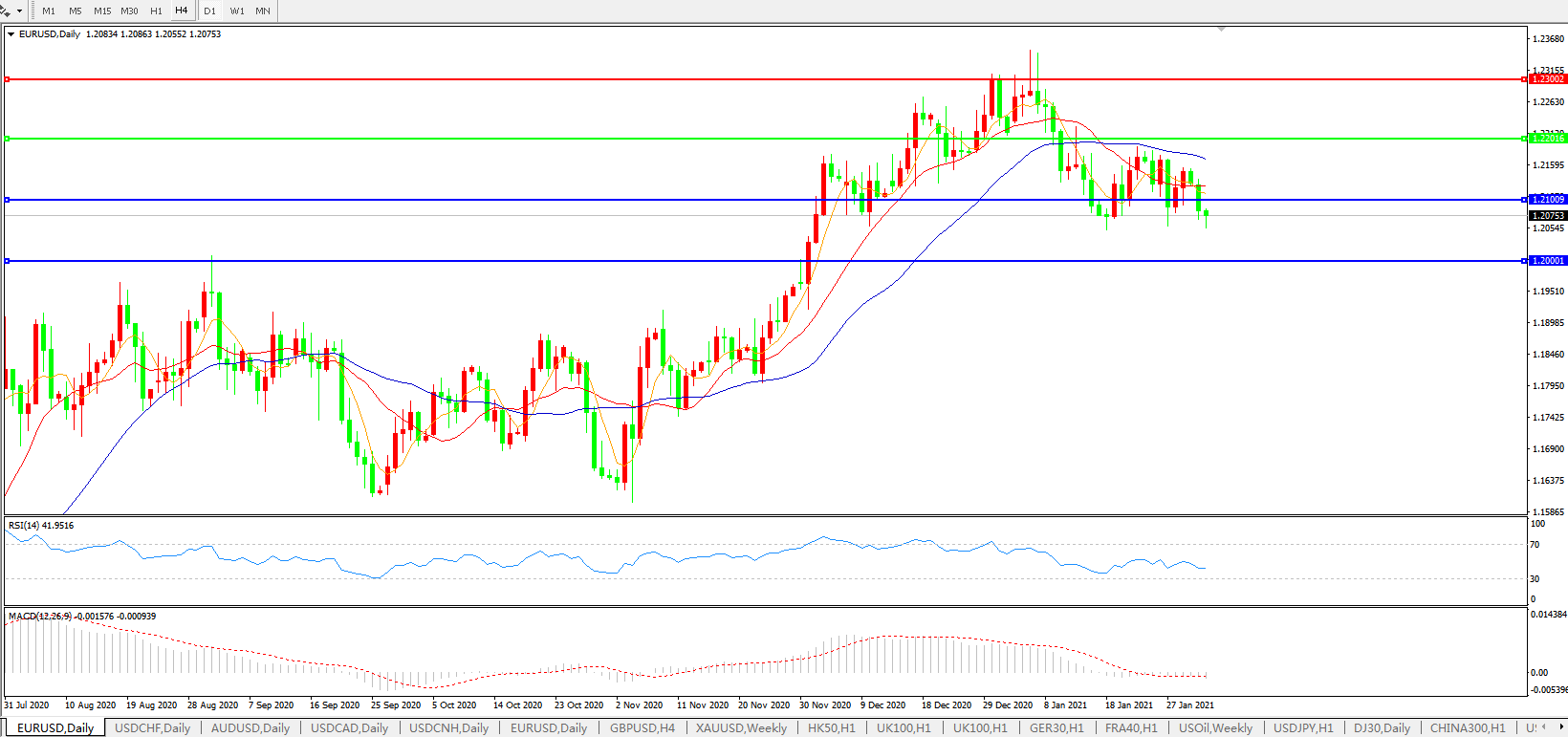 交易策略:1.2200下方看跌,目标1.2100、1.2000