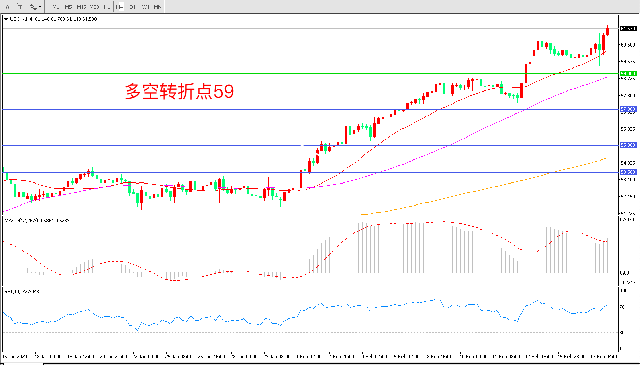 交易策略:在59.00之上看涨,目标62.00 65.00