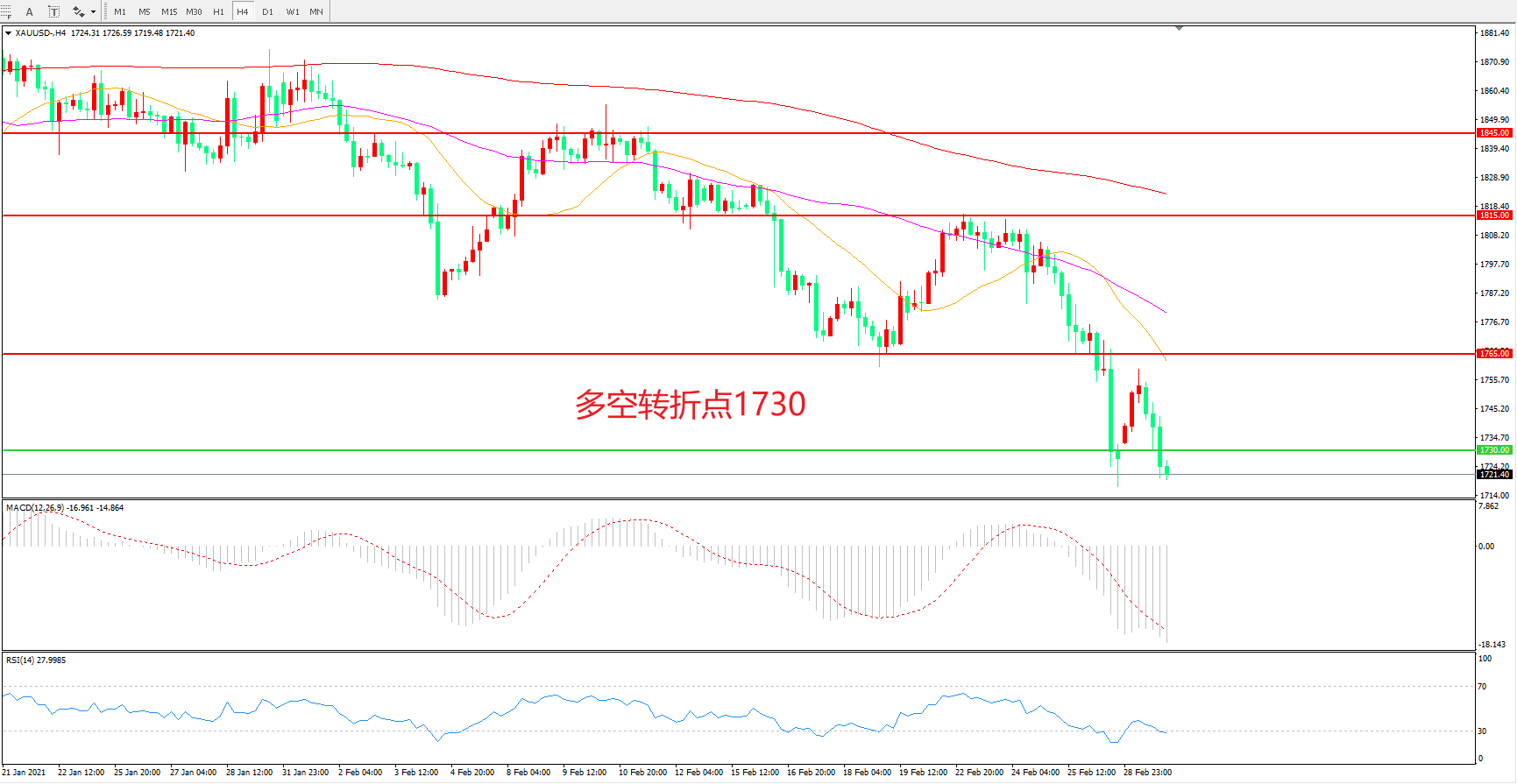 交易策略:在1730.00之下看跌,目标1700.00    1660.00