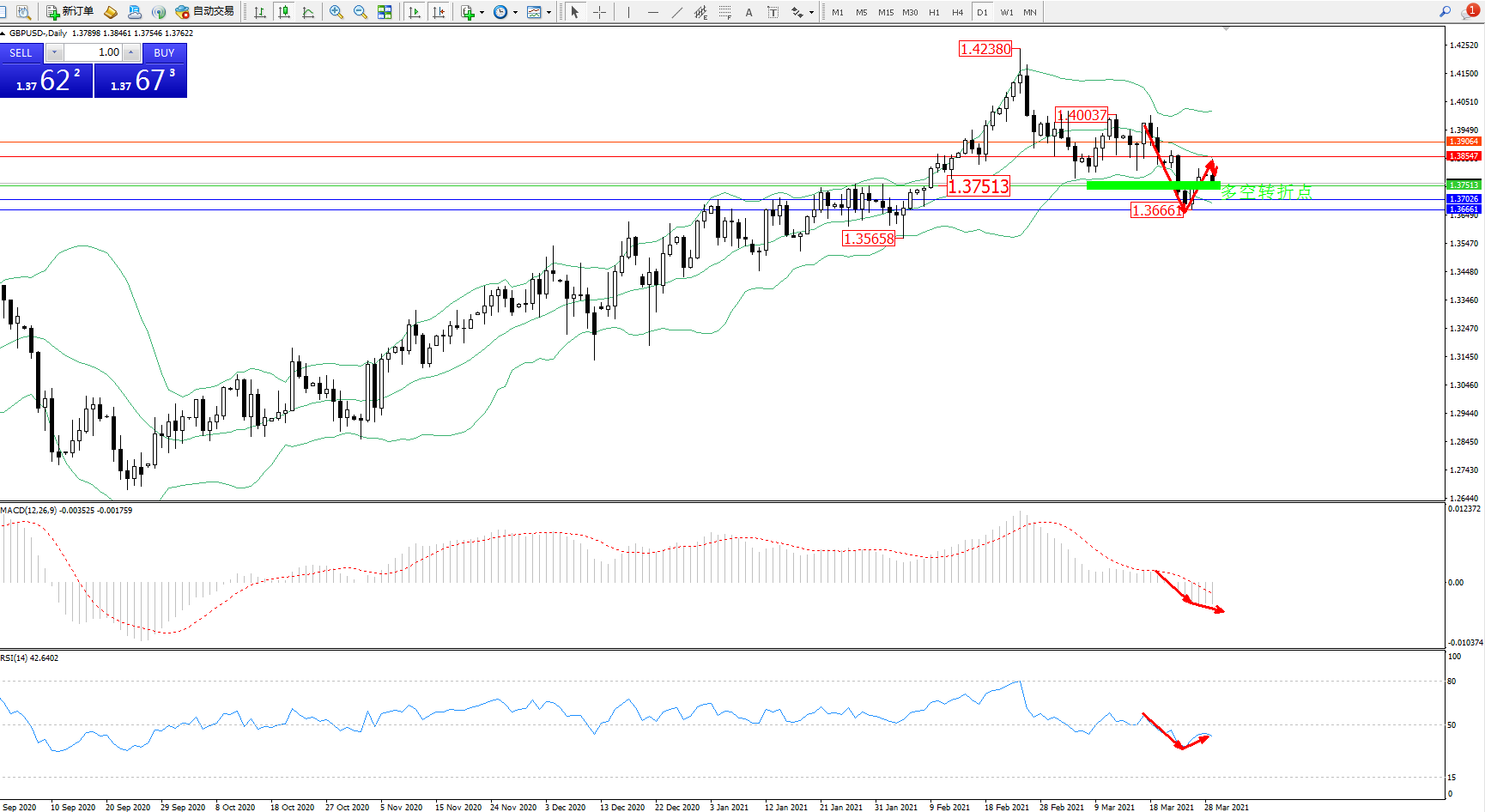 交易策略:1.37513上方看涨,目标1.38547、1.38064