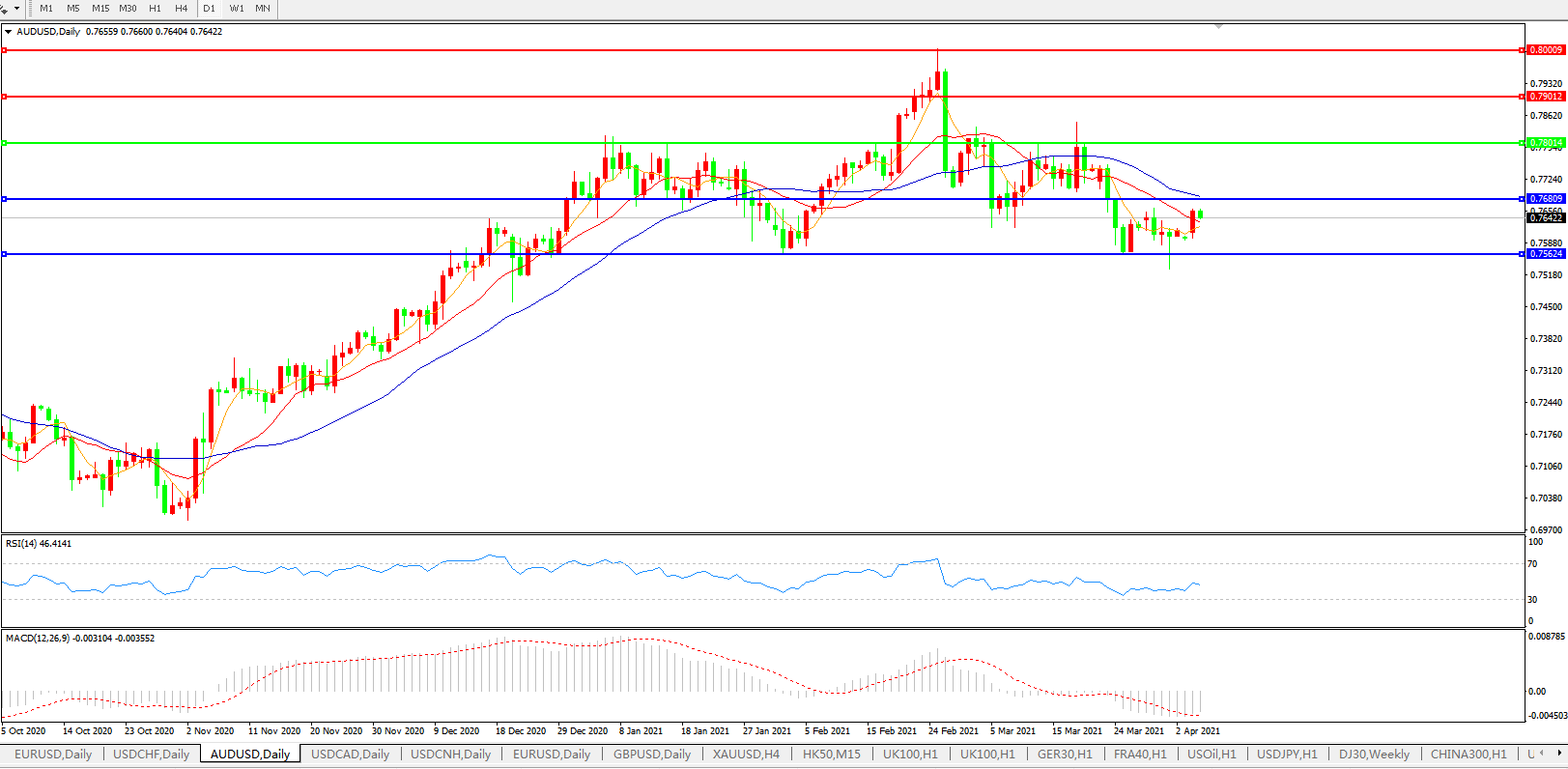西太平洋银行认为,更倾向逢低买入澳元兑美元,而非逢高卖出,澳洲联储主席洛威重申依然处于近些年的交易区间顶部,并断定各种货币措施引发汇率下跌,对全球形势的评论很少,但认为全球贸易已经回升,大宗商品价格大多高于年初。美国经济加快复苏正提振全球风险偏好情绪,MSCI全球指数周一收盘再创历史新高。尽管如此,美国在疫情控制和疫苗推出方面明显优于欧元区的表现,应该会暂时支撑美元指数,间接限制澳元兑美元的上行空间,在保就业计划到期后,可能进入澳大利亚数据疲软的时期;技术面来看,澳元兑美元料继续在0.7550获得支撑,但可能会受阻于0.7700,重返0.8000的阻力位可能需要等到第三季度。
