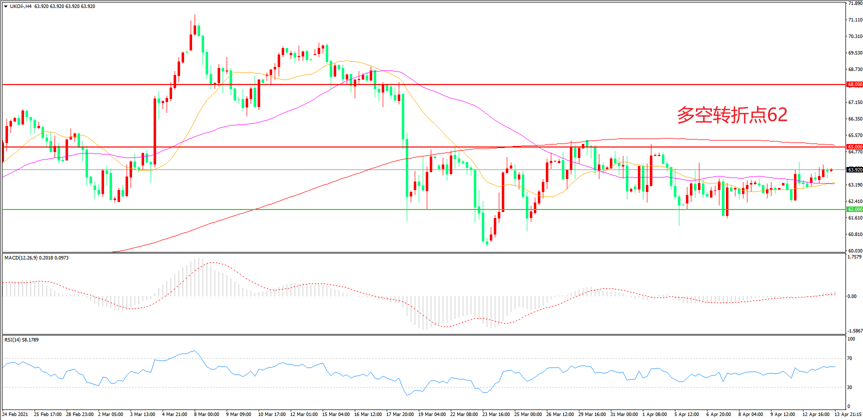 交易策略:在62.00之上看涨,目标65.00 68.00
