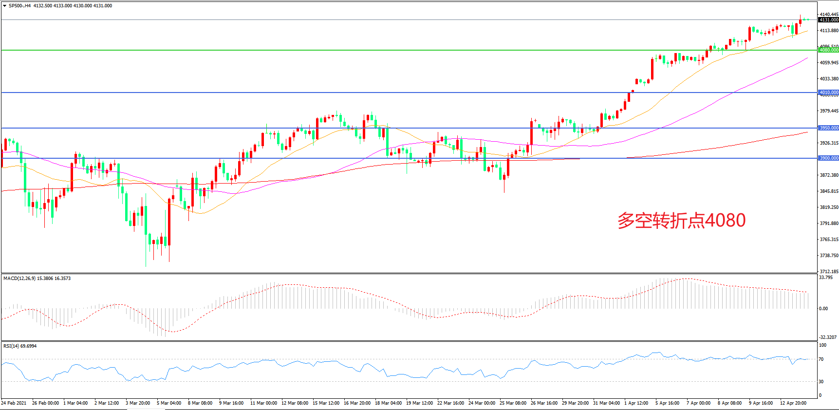 周二(4月13日),根据美国劳工统计局公布的数据显示,美国3月CPI同比增长2.6%,创下2018年8月以来的最高水平,体现了经济复苏的良好势头。数据公布后,美债收益率持续下行,美元指数掉头下跌,标普500大幅拉升,收报4131.75点。