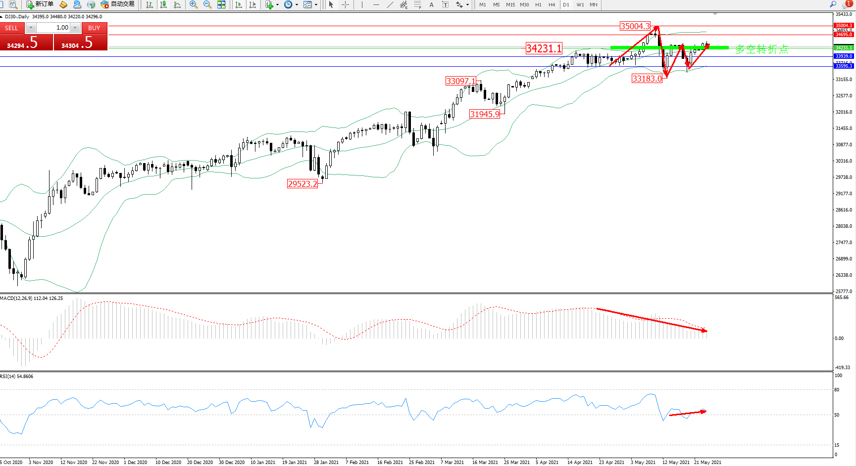 技术点评:多头动力延续布林带指标通道中上轨区间持续震荡上扬,高位抵达35004位置后遇阻回撤,多次纠结于中轨区间维持震荡弱势整理中,低位多头缓慢上攻破中轨附近节点后弱势整理,关注中轨附近节点,布林带指标呈收口平移走势良好,MACD指标处于多头区域高位维持震荡向下移动,RSI指标处于50均衡线附近不断震荡下移中;