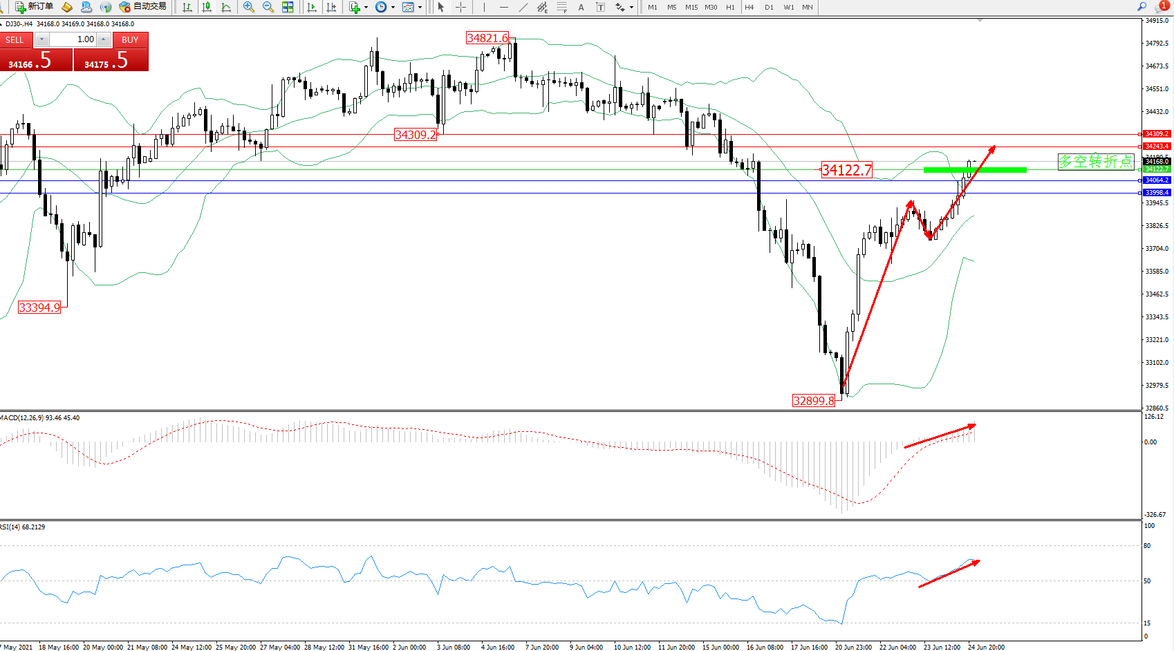 技术点评:低位多头动力强势反转拉升上扬,处于布林带指标通道中上轨区间不断拉升中,高位触及上轨附近节点后有继续向上移动态势,布林带指标呈收口走势后开始有张口迹象,MACD指标处于0轴线上方多头区域持续拉升上扬中,RSI指标处于50均衡线上方多头区域持续震荡不断上移;