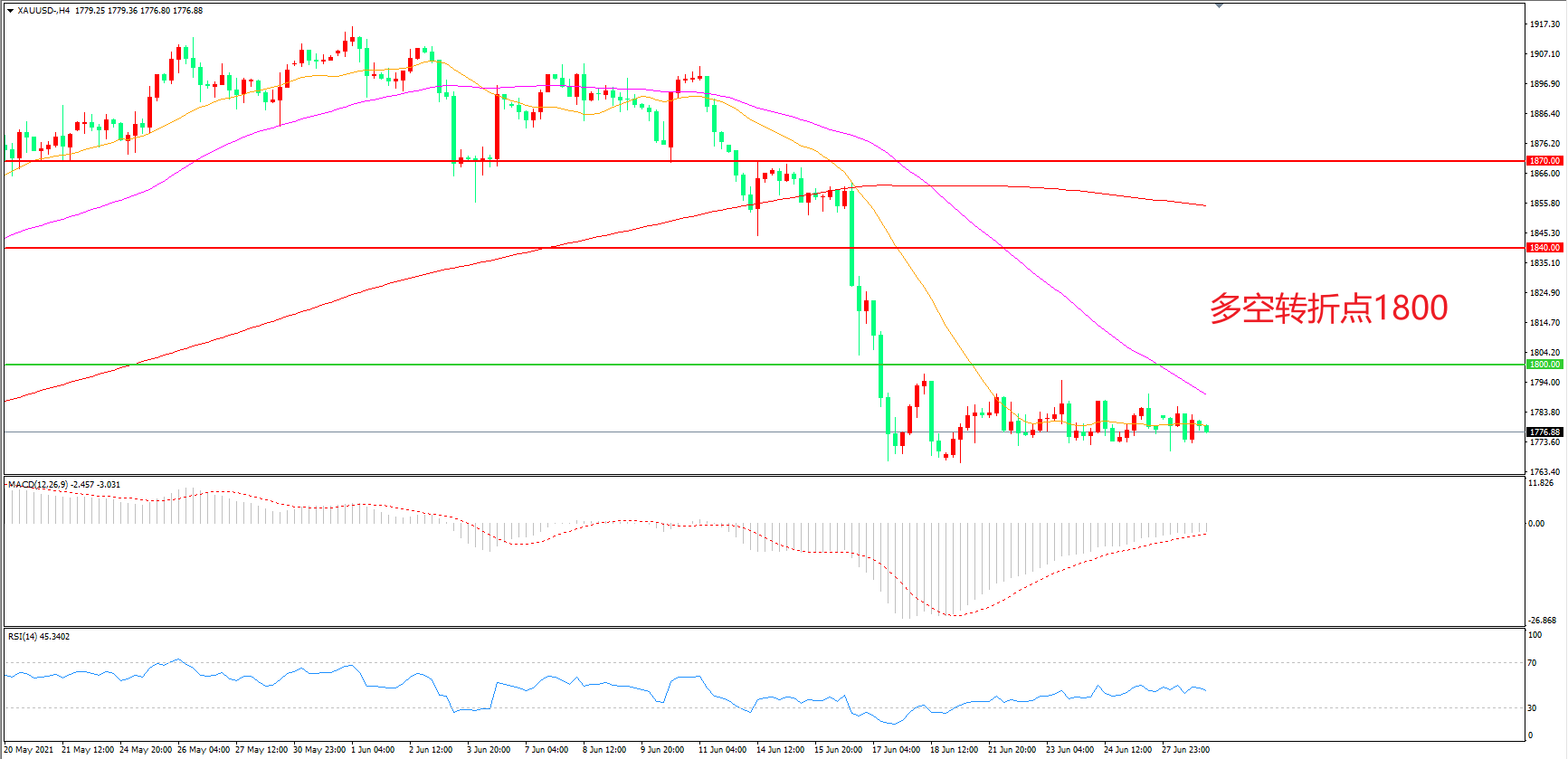 交易策略:在1800.00之下看跌,目标1760.00       1730.00