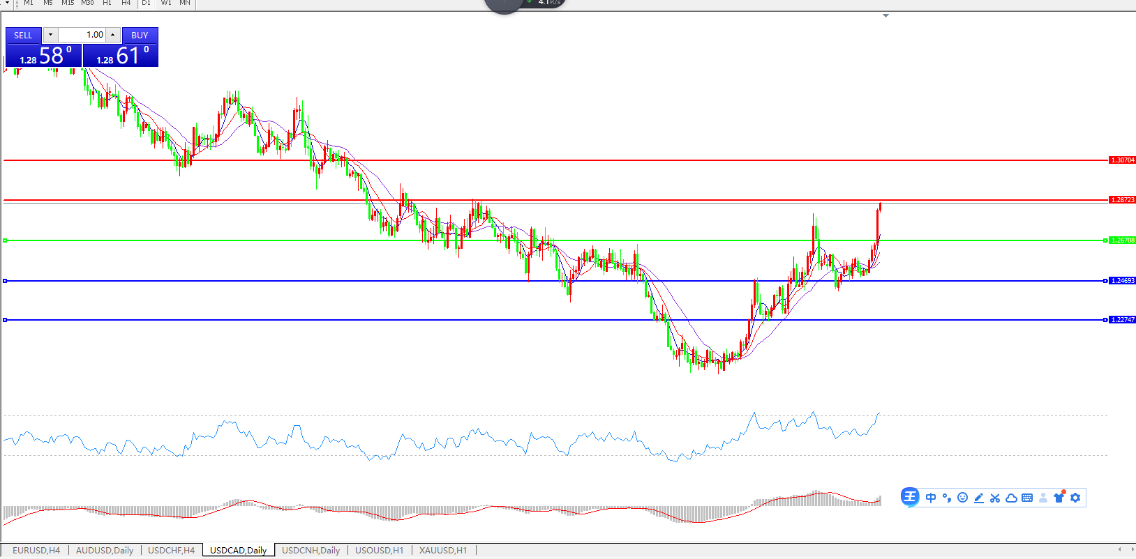 技术面简析:日图均线呈有序多头排列,汇价持续小幅走强,MACD运行于0轴上但量能小放量,RSI小幅走升,预计短期汇价大概率将进一步上行。
