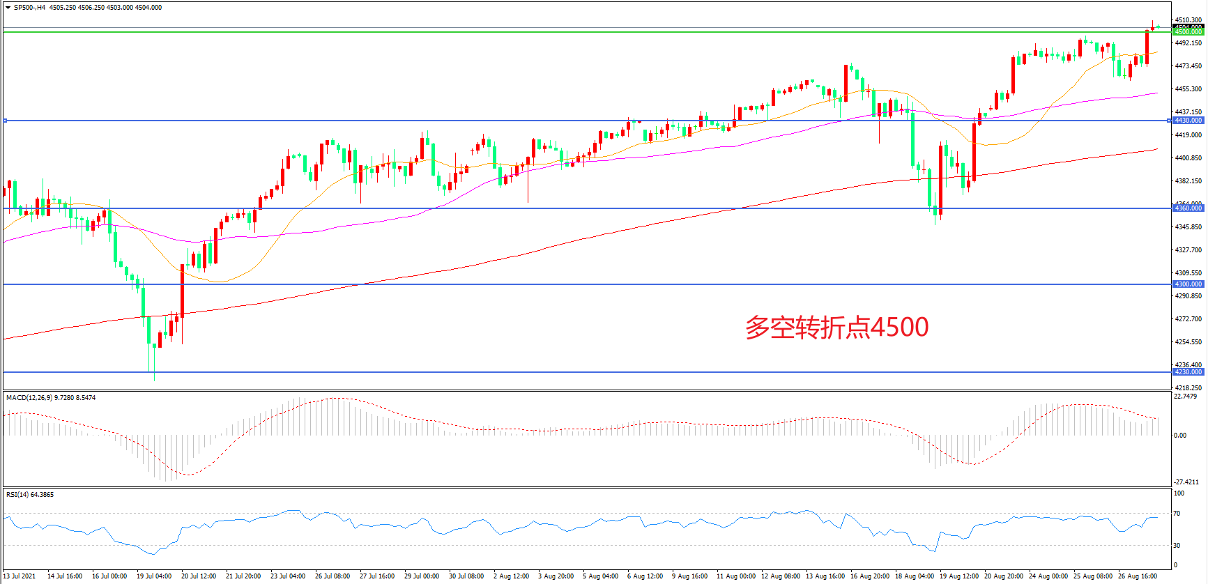 交易策略:在4500.00之上看涨,目标4575.00               4650.00