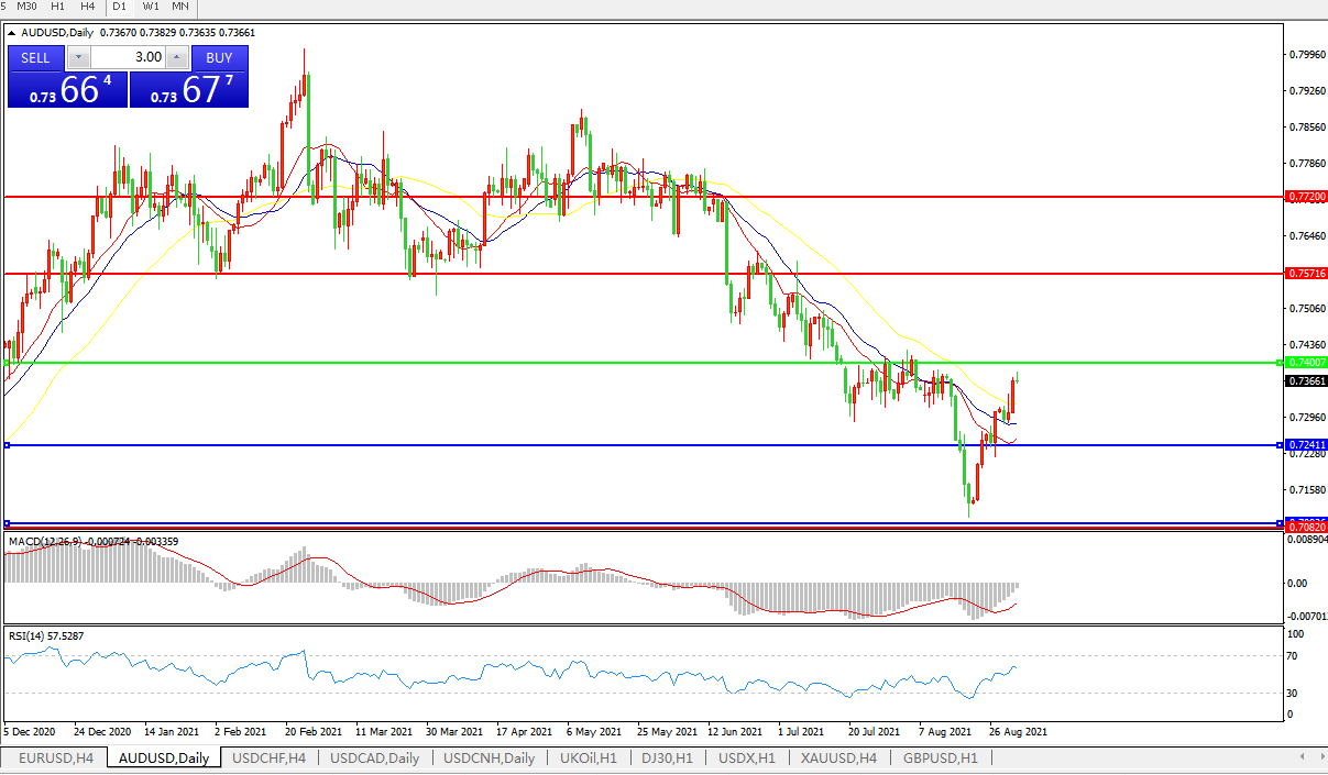 备选策略:0.7400上方看涨,目标0.7570、0.7720