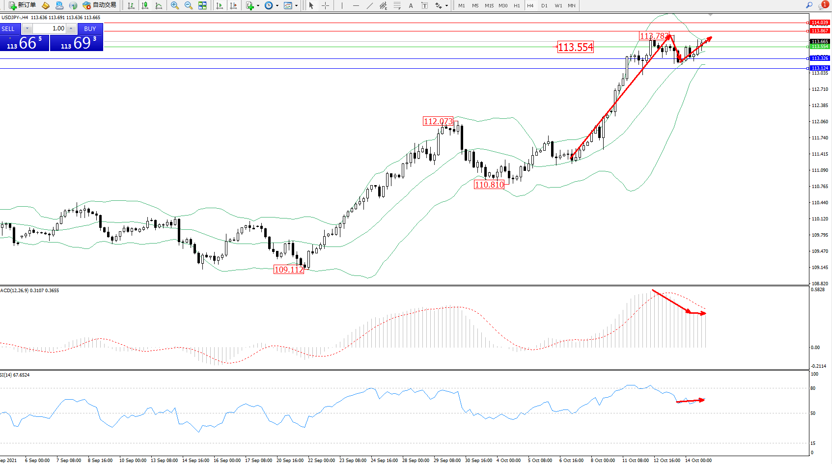 技术点评:多头动力延续布林带指标通道持续震荡上扬,高位抵达113.783位置后开始短暂整理平移,多空动力短期出现焦灼状态,布林带指标呈收口走势后有即将张口迹象但低位上扬态势持续中,MACD指标处于多头区域高位缓慢下行后开始平移,RSI不足处于多头区域维持平移中;