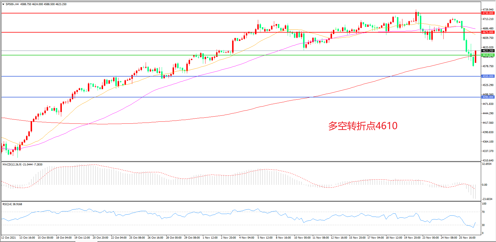 交易策略:在4610.00之下看跌,目标4550.00    4450.00