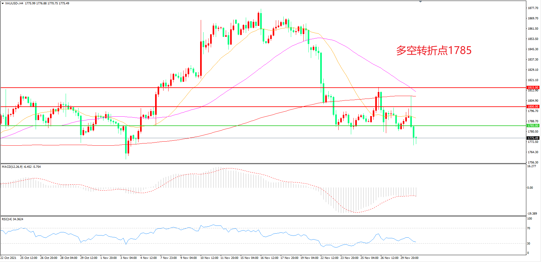 周二(11月30日),美联储主席鲍威尔在听证会上表示,美国经济表现强劲,加上持续存在的重大通胀压力,美联储可能在下次会议上讨论加快缩减购债规模,鲍威尔的讲话给金价带来巨大压力,现货黄金长阴破位,收报1774.04美元/盎司。如果周五非农数据表现强劲,加息预期可能对市场形成更大压力。