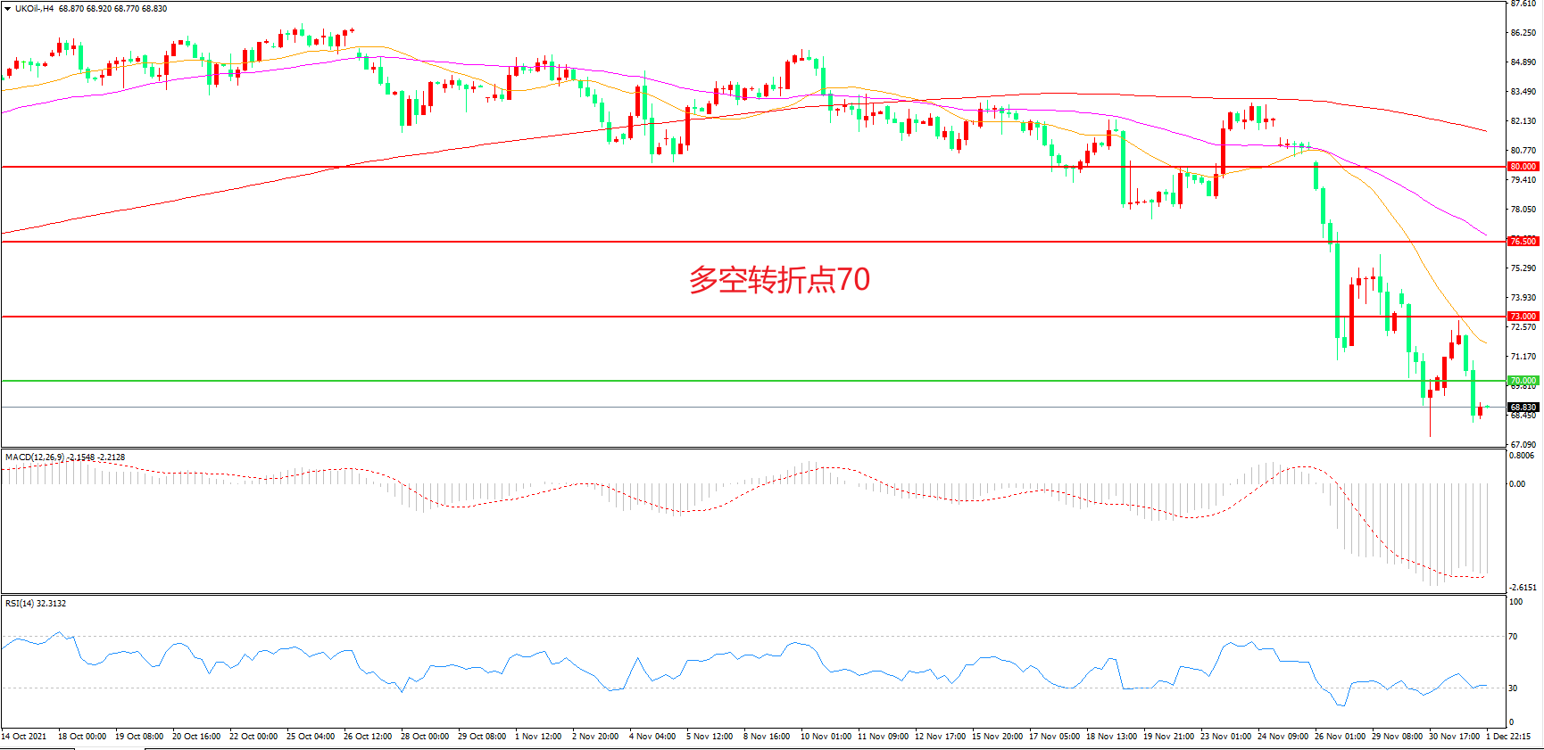 交易策略:在70.00之下看跌,目标67.50 65.00