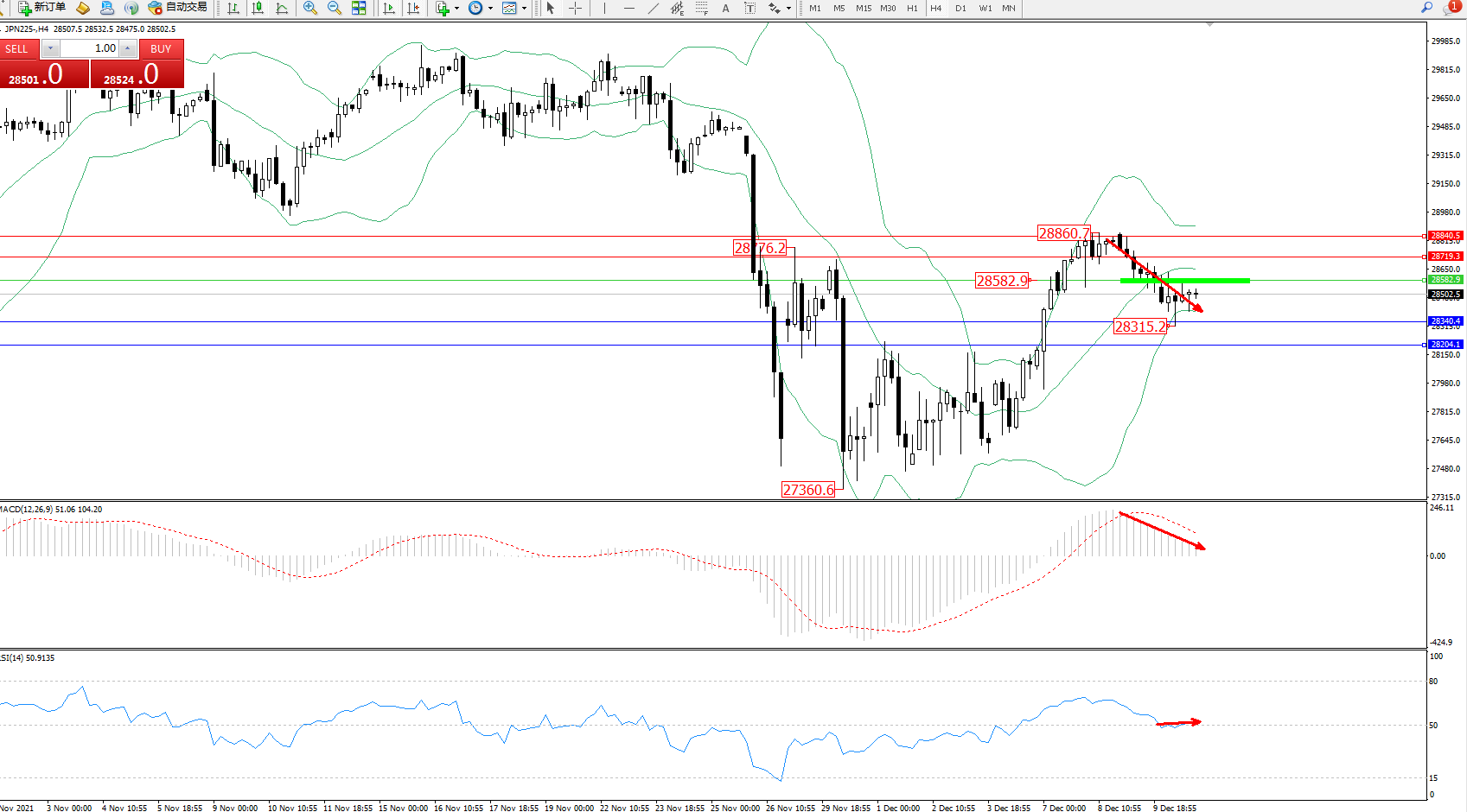 日经225指数12月10日(周五)收盘下跌293.97点,跌幅1.02%,报28431.50点。日本新冠疫苗累计接种达1.98亿剂,其中77.3%的人口已接种第二剂疫苗。下周五日本央行将公布利率决议。市场预计日本央行将在一定程度上延期对企业提供的新冠疫情援助计划,料仍按照当前模式延续,该援助计划原定于明年3月结束。预计日本央行不会在会议上调整主要政策调整。由于奥密克戎变异株给经济前景带来不确定因素,预期将在明年1月或3月做出决定。同意日本央行行长黑田东彦的评估,即日元目前疲软“毫无疑问”对整体经济有利。