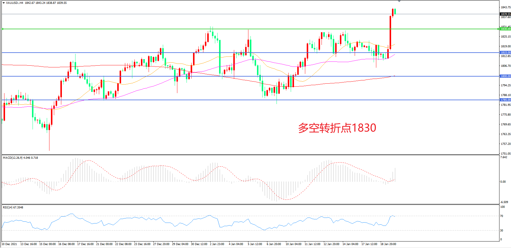 交易策略:在1830.00之上看涨,目标1845.00 1860.00