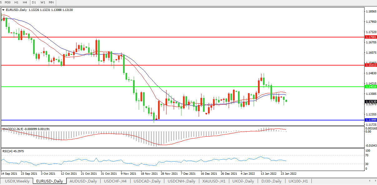 交易策略:1.1400下方看跌,目标1.1200、1.1000