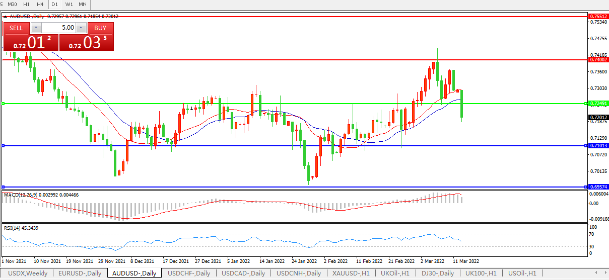 交易策略:0.7250下方看跌,目标0.7100、0.6950