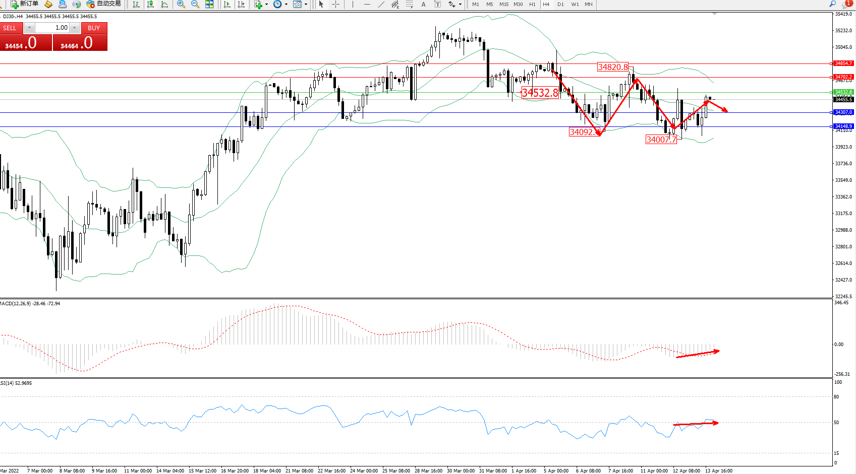 道琼斯指数4月13日(周三)收盘上涨349.73点,涨幅1.02%,报34570.09点;美股涨幅扩大,道指涨逾300点,美联储官员的评论突显了美联储目前没有转向,这为美元在经历了震荡后继续走强提供了保证。阻力最小的路径仍然是收紧政策,积极加息并缩减资产负债表。