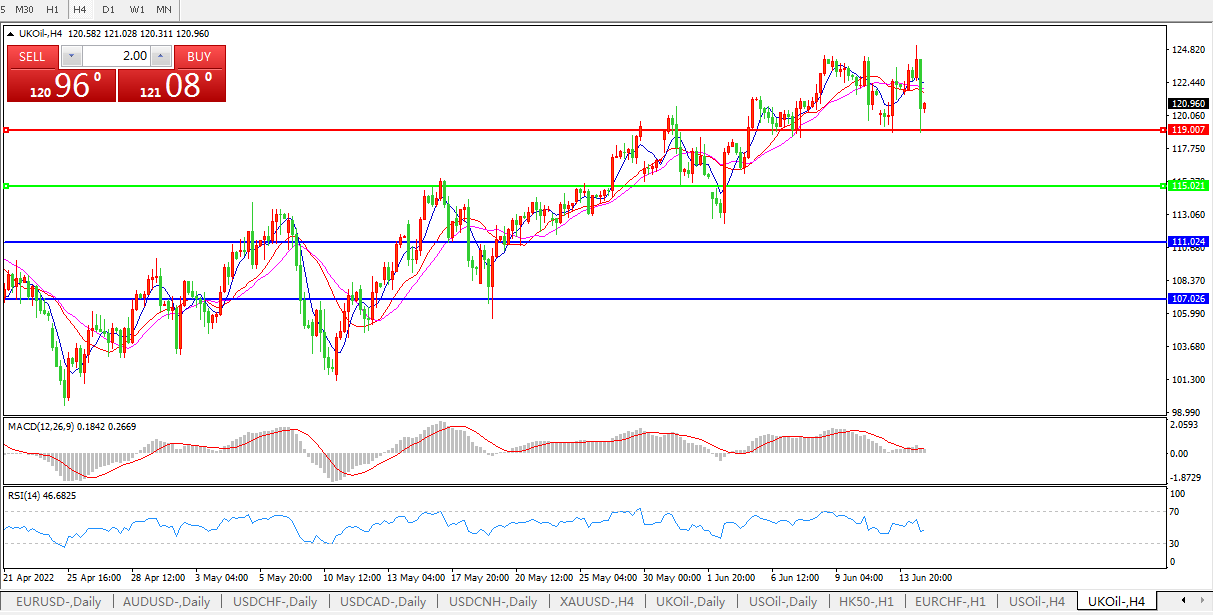 布伦特原油期货结算价下跌1.10美元,报每桶121.17美元;早前盘中一度涨逾2%。有迹象显示美国民主党人在自己和白宫面临日增的遏制能源成本和通胀压力下正考虑更多能源立法。与此同时,人们担心美联储将以高于预期的幅度加息,令市场承压