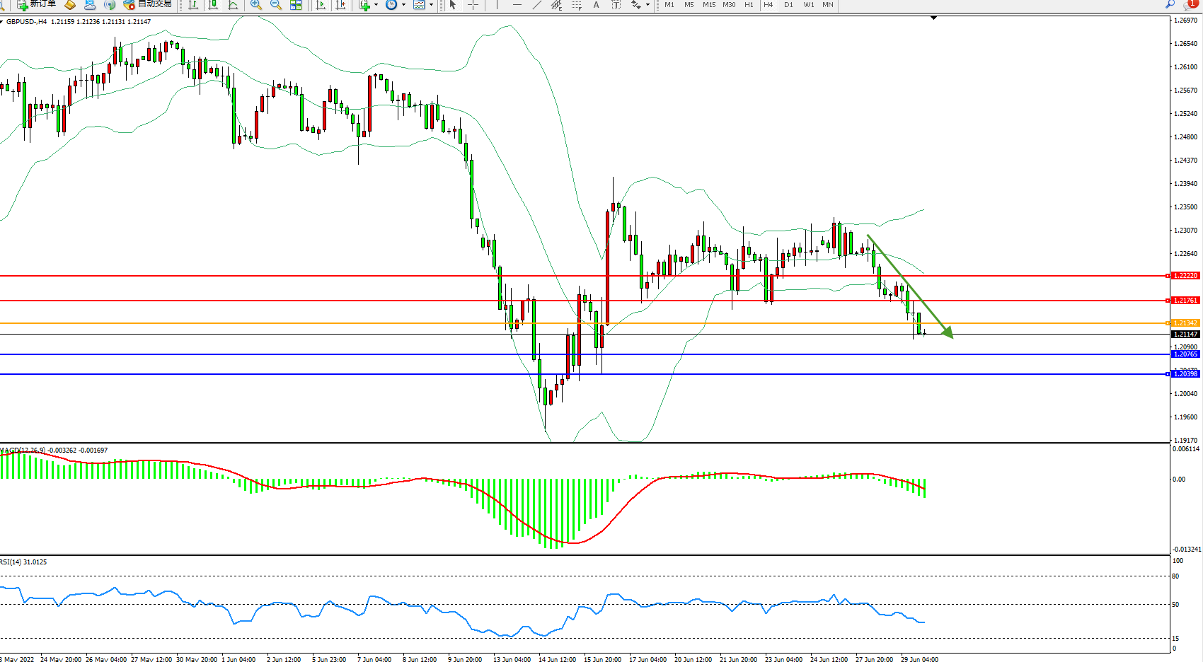 交易策略:1.21342下方看跌,目标1.20765、1.20398