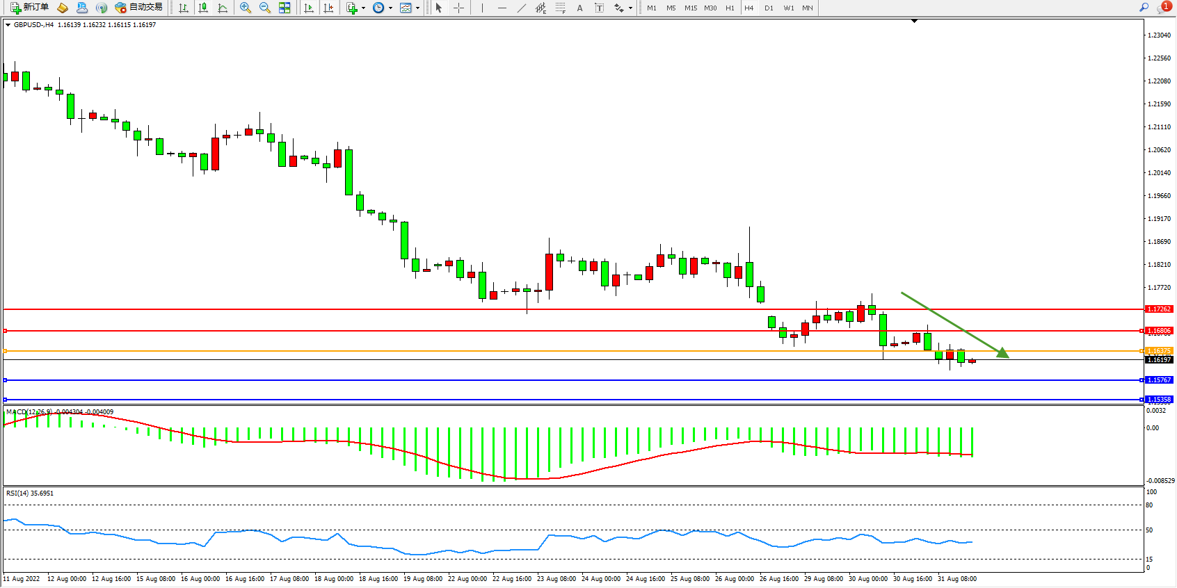 英镑美元GBPUSD ——4小时K线图显示: