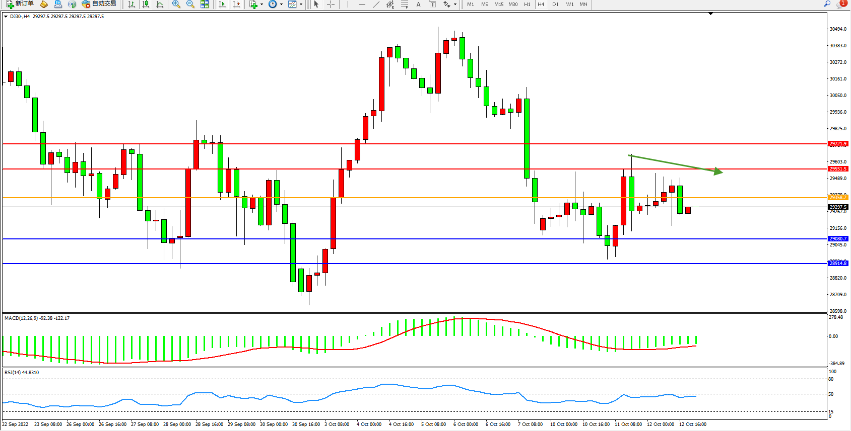 道琼斯指数10月12日(周三)收盘下跌28.67点,跌幅0.10%,报29210.52点;美国9月生产者价格指数增幅超过预期,因服务和商品成本强劲上涨,暗示通胀可能在一段时间内维持在令人不安的高位。